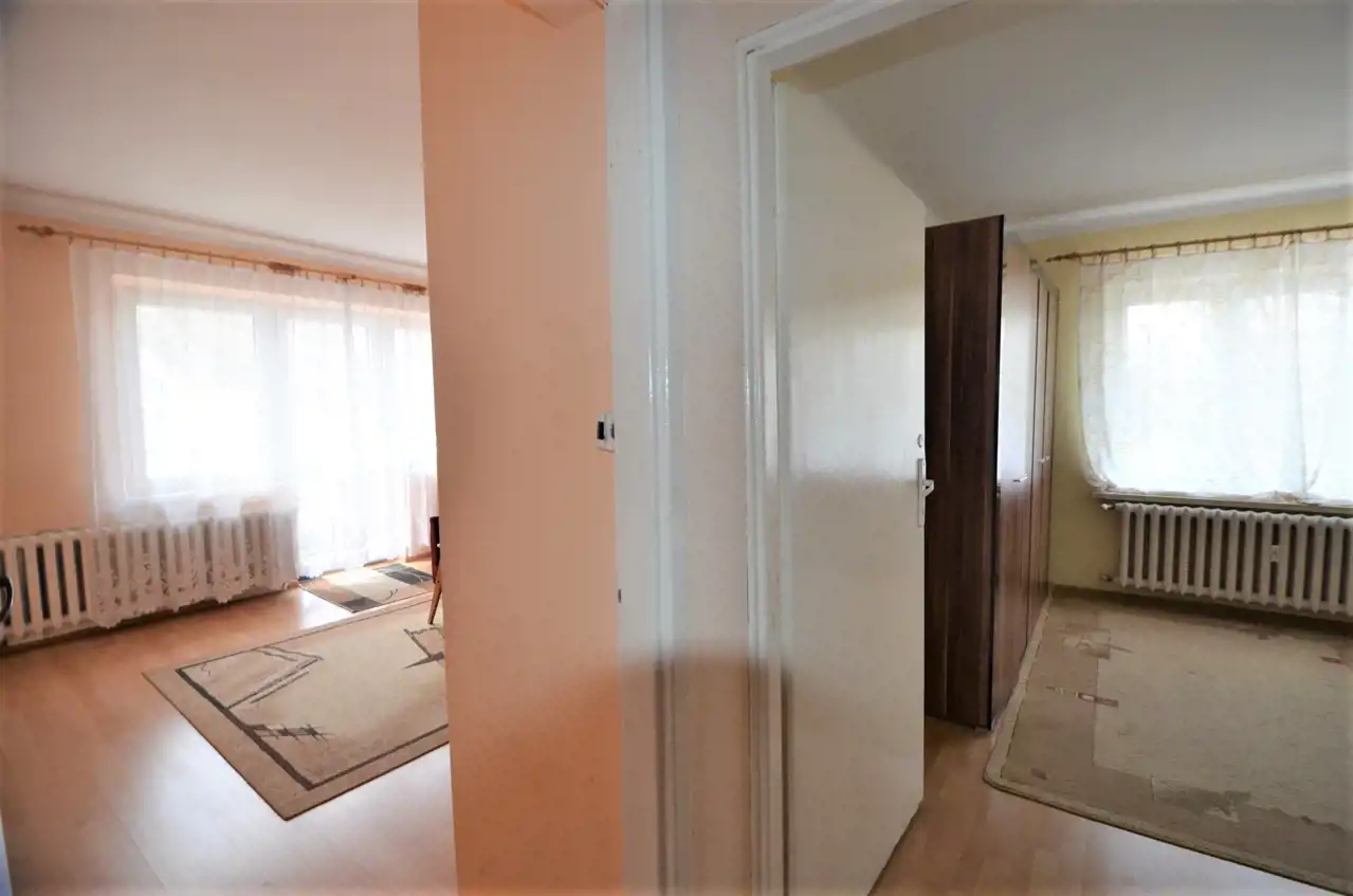 Poddasze: pokój z balkonem (ok14 m2), pokój (ok. 13 m2) przedpokój z aneksem kuchennym (ok 3 m2), łazienka (2,7 m2).