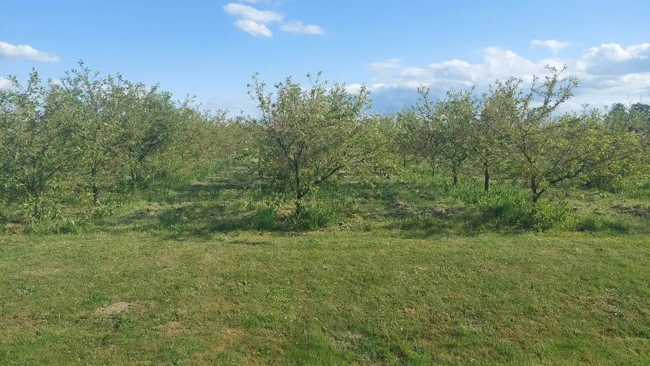 Działka - powierzchnia 1,82 Ha , obecnie stanowiąca sad wiśniowy , oznaczona w miejscowym planie zagospodarowania symbolem RM - możliwość zabudowy zagrodowej do 50 m w głąb działki , pozostały teren to grunty rolne.