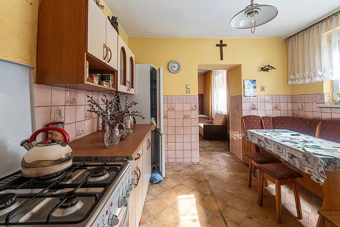 Nieruchomość wymaga remontu, nie jest to gotowy dom do zamieszkania, ale jest spory metraż, który daje wiele możliwości.