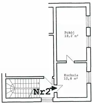 Lokal składa się z: pokoju o pow. 18,20 m2, kuchni o pow. 10,80 m2. Dodatkowo do nieruchomości przynależą pomieszczenia o łącznej powierzchni 11,10 m2: piwnica o pow. 1,80 m2, komórka w budynku gospodarczym o pow. 8,00 m2, WC w budynku gospodarczym o pow. 1,30 m2.