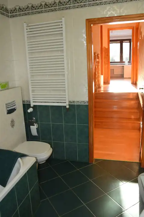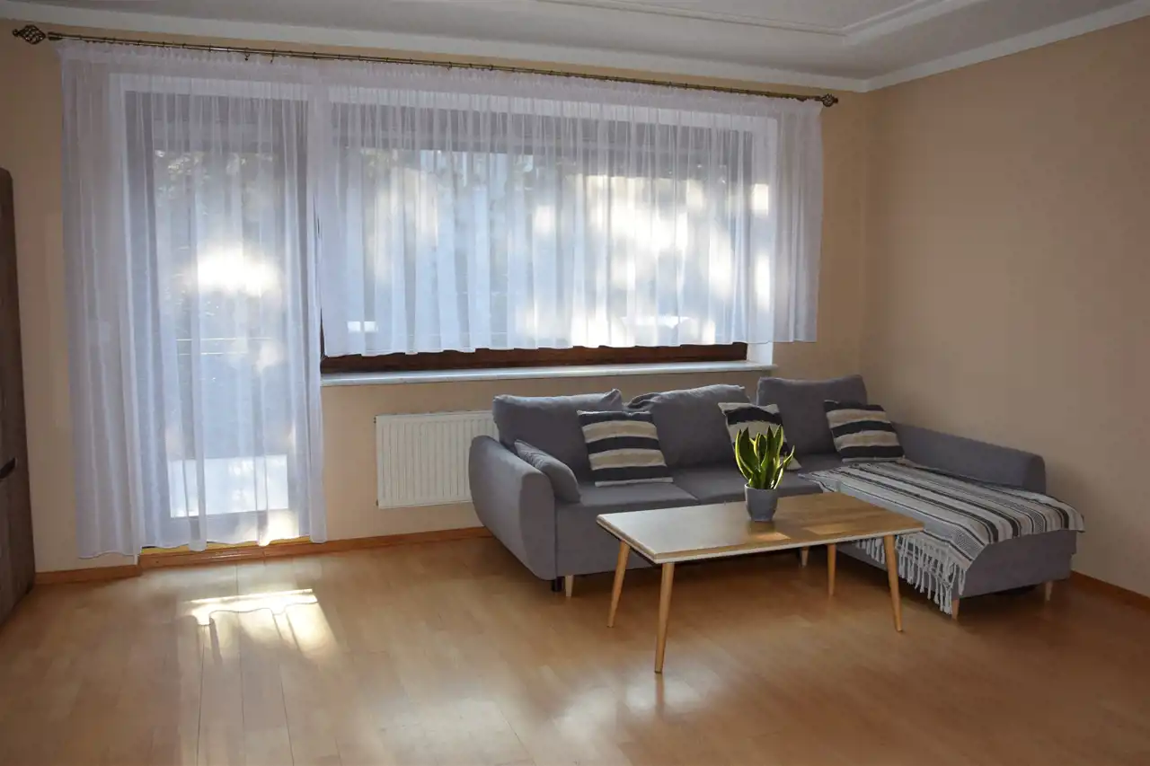 W dolnej kondygnacji domu znajduje się zadbany, przestronny pokój - siłownia , przestronny dwustanowiskowy garaż oraz duża pralnia z suszarnią i/lub miejscem na dodatkową łazienkę lub miejscem do kąpieli czworonożnego pupila. Dodatkowe pomieszczenia na przechowywanie sprzętów, przetworów lub biuro z niezależnym wyjściem do ogrodu. Zejście do pomieszczeń znajduje się bezpośrednio przy drzwiach wejściowych, dzięki czemu można swobodnie schodzić, nie zakłócając spokoju pozostałych domowników.