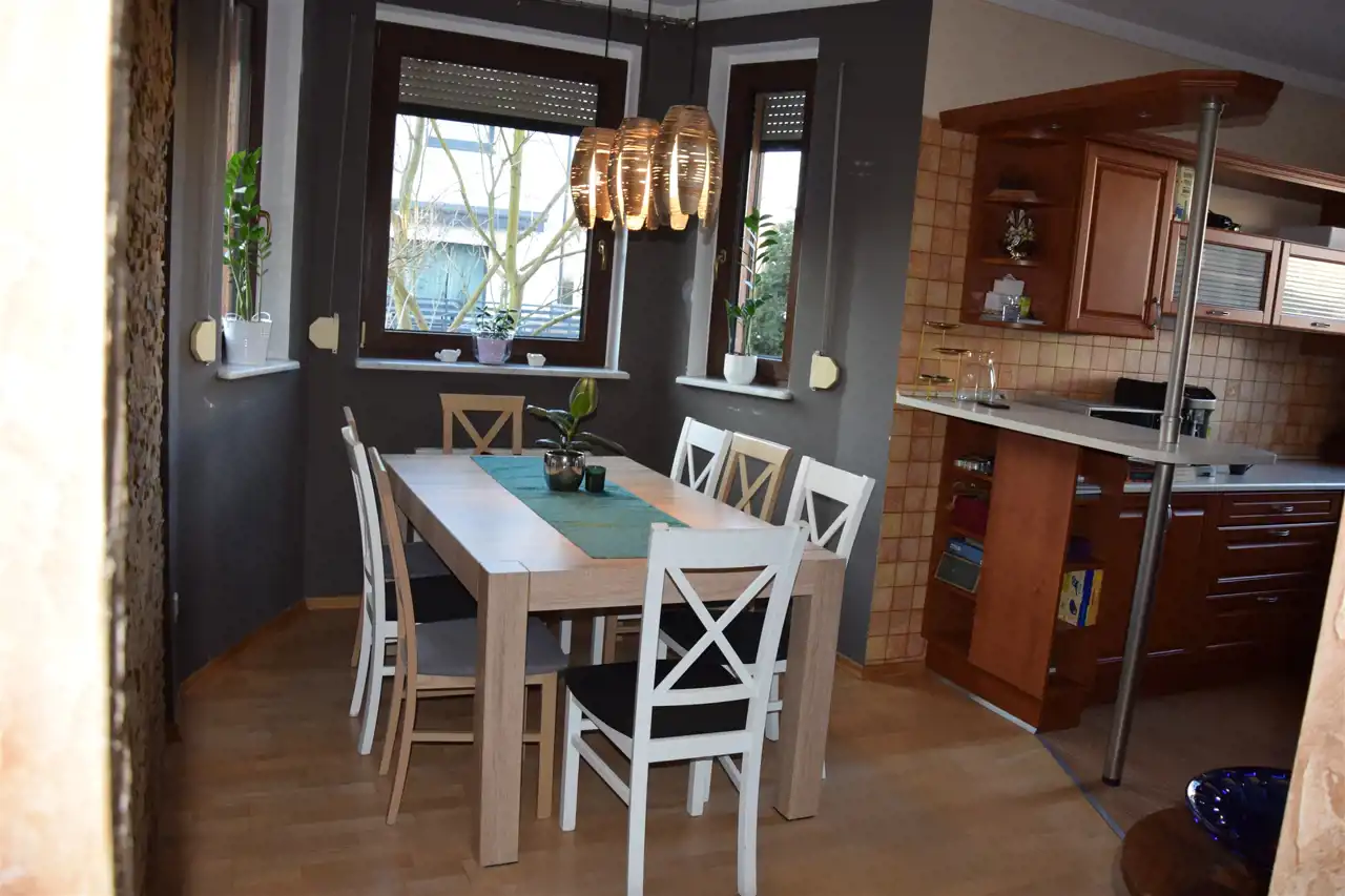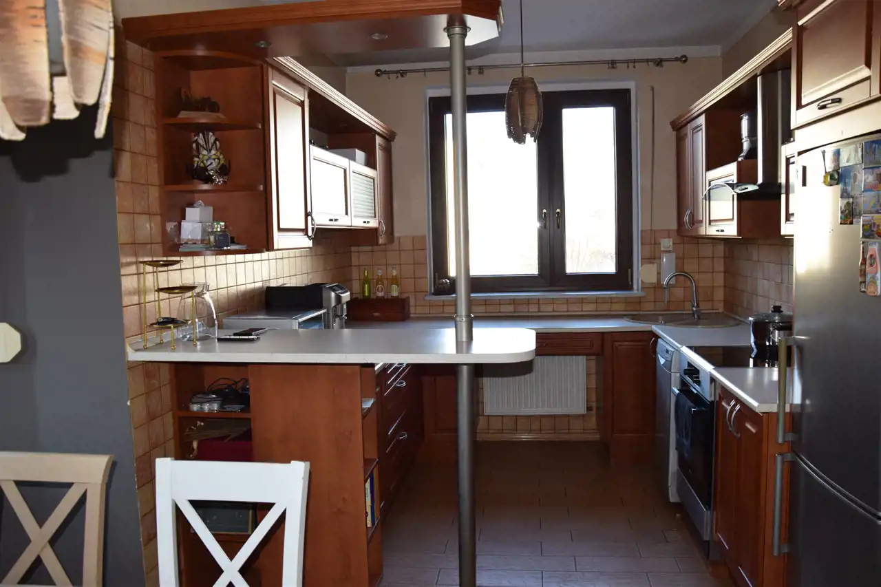 Polecam do sprzedaży dom w miejscowości Skórzewo, gmina Dopiewo. Starannie przemyślany rozkład domu sprawia, że dom jest wygodny i bardzo funkcjonalny, gotowy do zamieszkania/ termin przekazania nieruchomości do uzgodnienia/. Ogrzewanie gazowe, piec dwufunkcyjny, urządzenie do uzdatniania wody oraz fotowoltaika o mocy 5 KW sprawiają, że mieszkanie w tym domu to idealna propozycja dla osób, które chcą mieszkać blisko Poznania, a jednocześnie cenią komfort użytkowania i atmosferę małej, spokojnej miejscowości. Kuchnia połączona z jadalnią z meblami i urządzeniami w zabudowie pozostają w cenie domu. Podłogi drewniane- deska barlinecka do odświeżenia. Okna nowe, trzyszybowe z roletami zewnętrznymi, parapety kamienne. W salonie kominek.