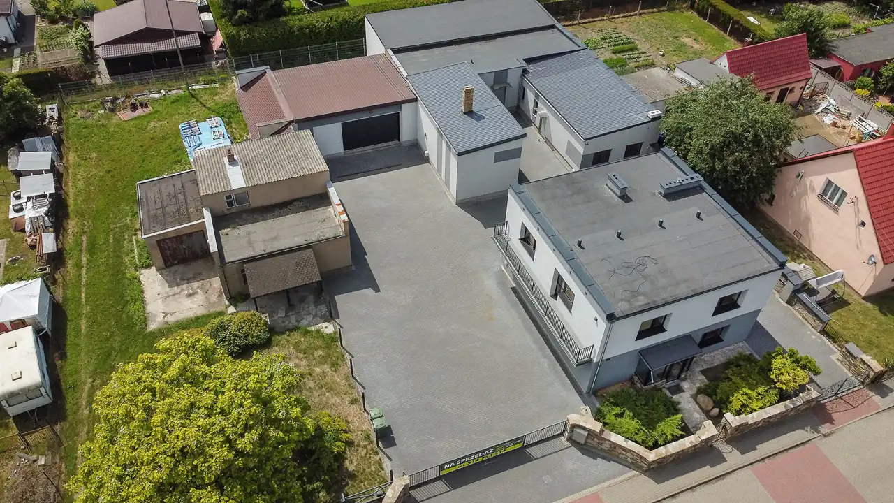 Cena obejmuje wszystkie budynki usadowione na dwóch działkach geodezyjnych o łacznej powierzchni 1972 mkw. Dom i budynki magazynowe posiadają osobne węzły cieplne. (piece gazowe)