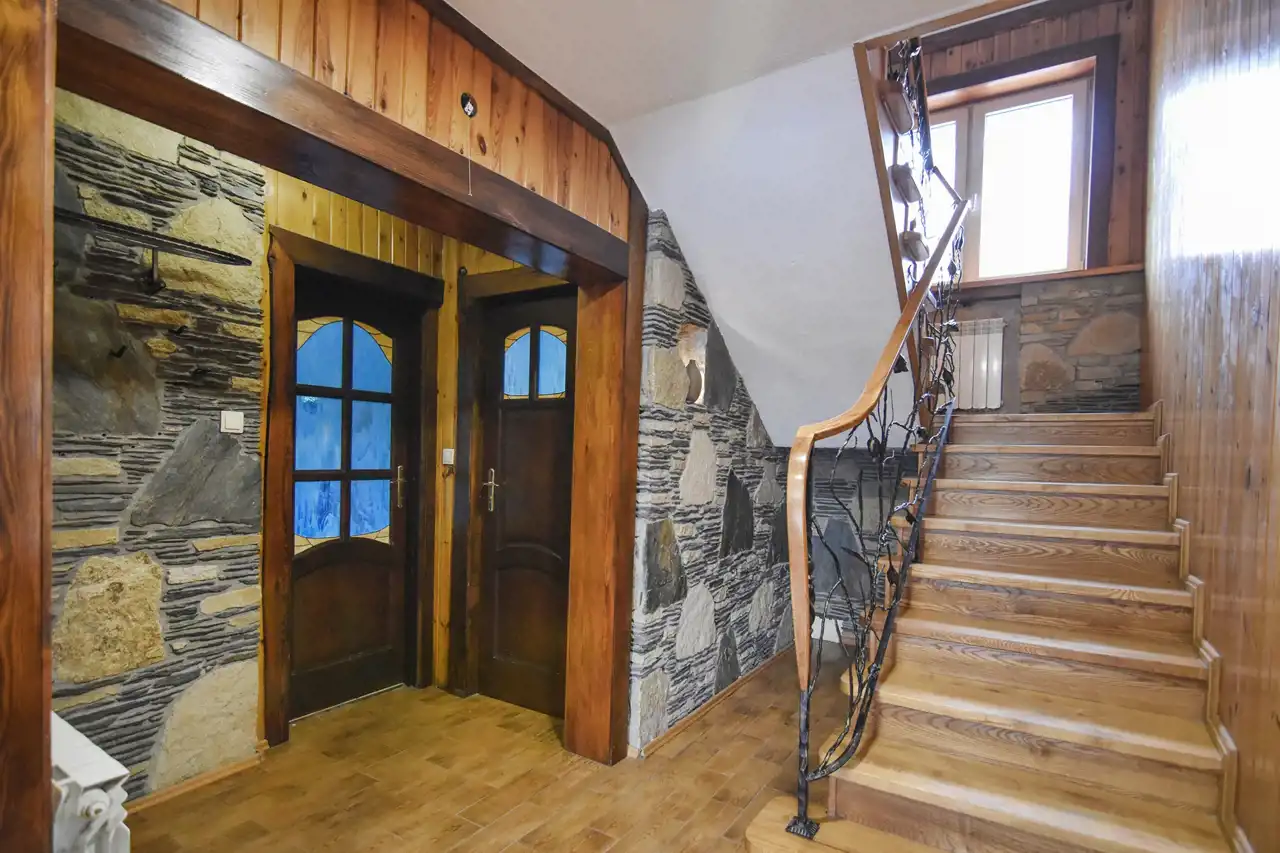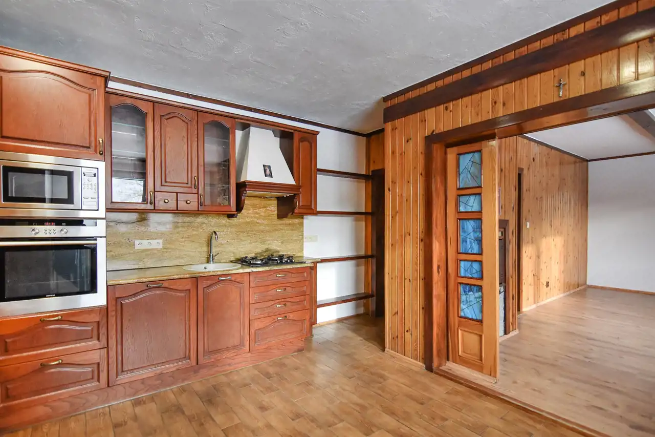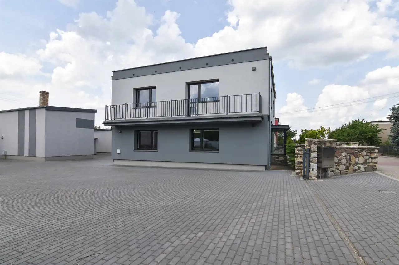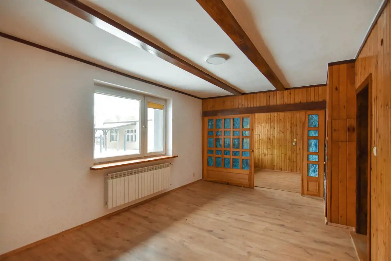 Duży dom (obecnie po remoncie) - 220 mkw, dla rodziny, na biura lub kwatery pracownicze. Nadaje się też pod klub malucha. Posiada on 7 pokoi i 2 łazienki. W budynkach obok możliwość wydzielenia kolejnej powierzchni mieszkalnej.