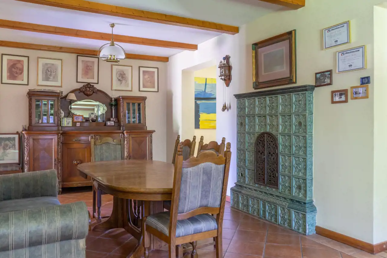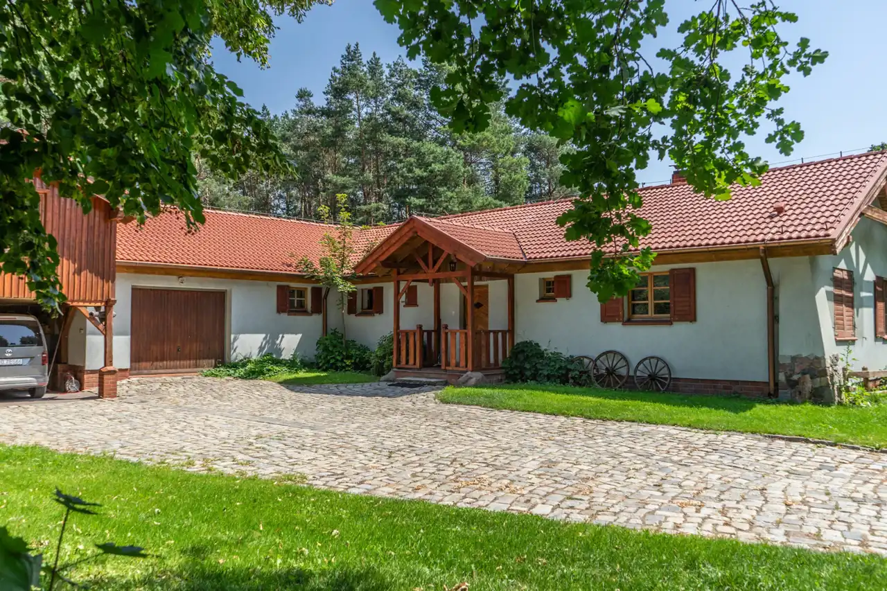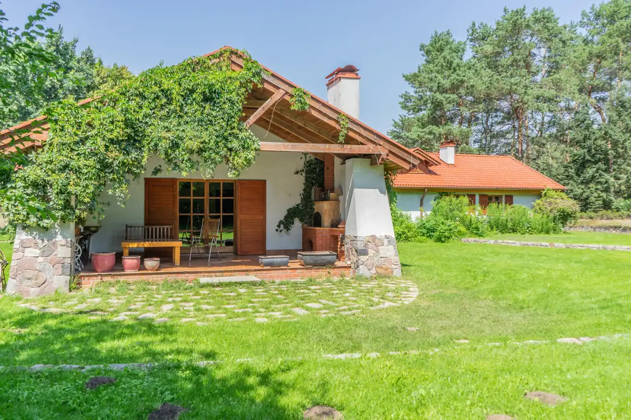 Ta przepiękna rezydencja zachwyca zarówno swoim niepowtarzalnym wnętrzem jak i doskonalą lokalizacją. Ponad 2000 m2 działki stanowi las, co nadaje jej niepowtarzalnego uroku i zapewnia ciszę i spokój.
