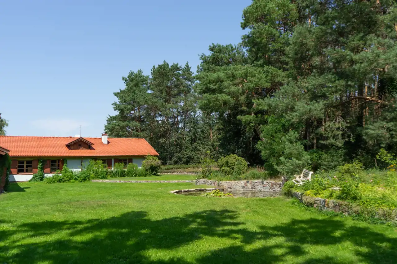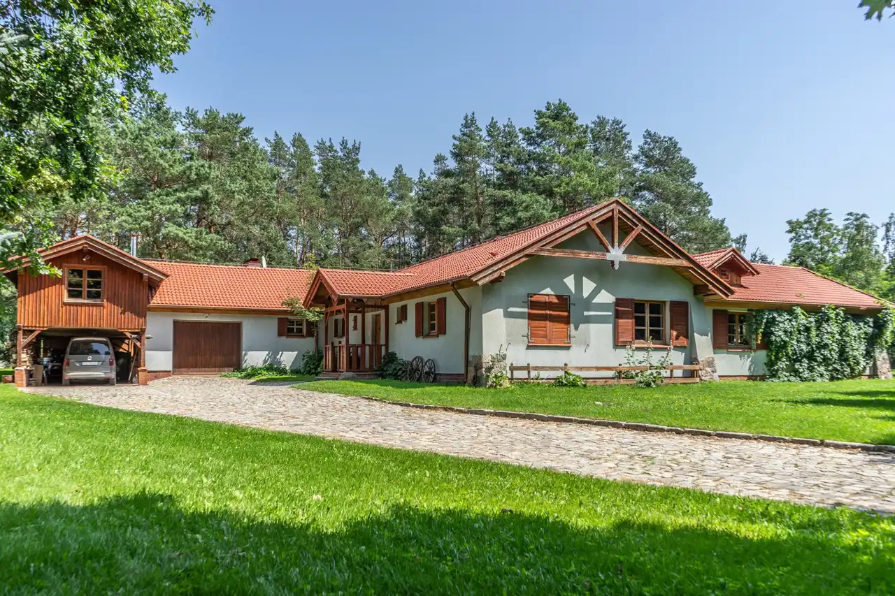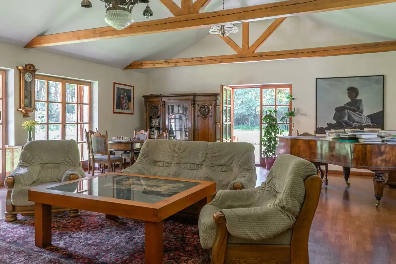 Ta przepiękna rezydencja zachwyca zarówno swoim niepowtarzalnym wnętrzem jak i doskonalą lokalizacją. Ponad 2000 m2 działki stanowi las, co nadaje jej niepowtarzalnego uroku i zapewnia ciszę i spokój.