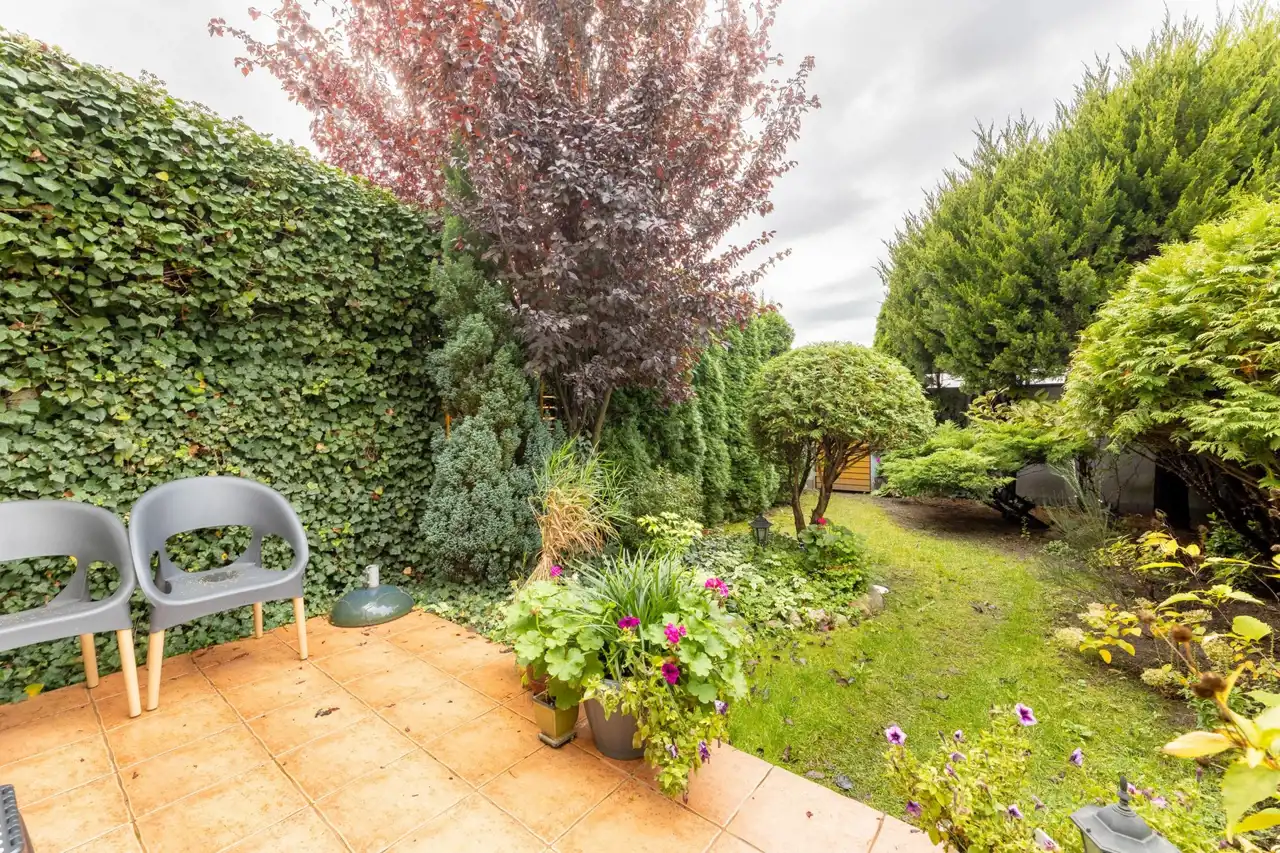 Sam ogród wyposażony w wygodny taras o powierzchni 12 m2, trawnik, iglaki i byliny aż zaprasza do wypoczynku na świeżym powietrzu.