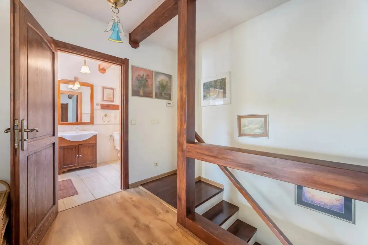 wykończony pod klucz, mieszkanie używane od początku tj. od 19 lat przez jednego właściciela, nie wymagające nakładów – idealne dla wymagającego klienta chcącego uniknąć remontu. Na podłogach w pokojach, panel podłogowy o praktycznej kolorystyce. Schody w jasnej okładzinie, utrzymujące nowoczesny design, podświetlone przy stopniach. W salonie znajduje się sprawny i wydajny kominek, który pozwala ogrzać się przy naturalnym płomieniu w chłodne jesienne wieczory.