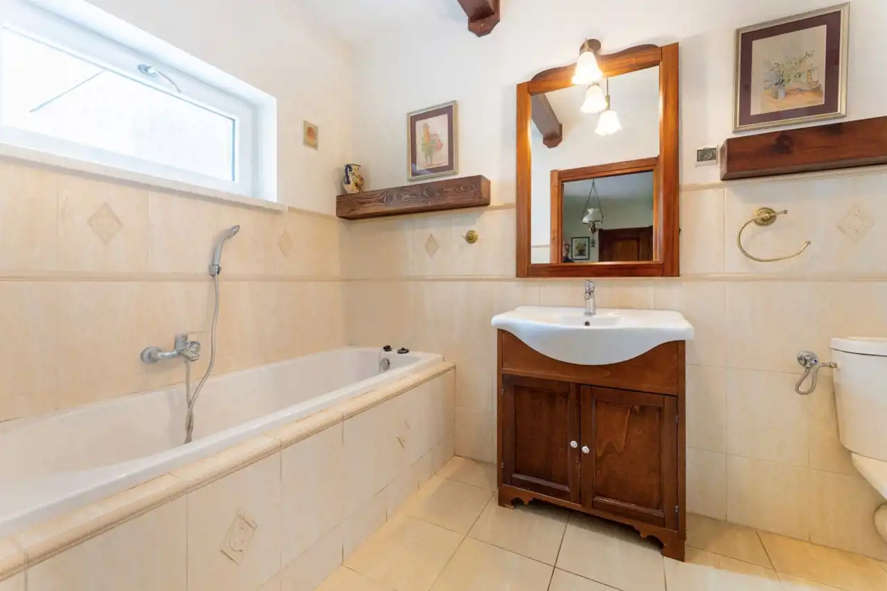 W tym domu wyposażonym w duży salon i kuchnię z jadalnią oraz 2 sypialnie na piętrze, dużą łazienkę z oknem i osobne wc każdy kącik jest rozsądnie zagospodarowany.