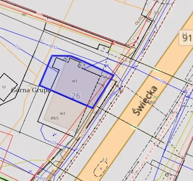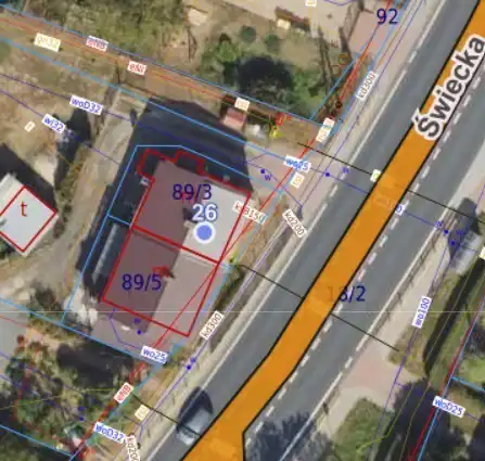 Nieruchomość położona jest przy ul. Świeckiej – to wygodna lokalizacja dla osób, które cenią sobie ciszę, ale nie chcą rezygnować z dobrego dojazdu do miasta.