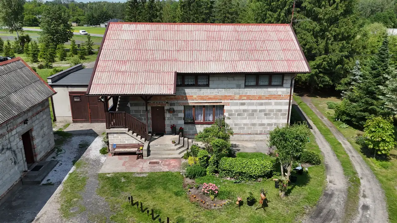 Dom jednorodzinny z lat 1982–83 (materiał: Superex i keramzyt), o solidnej konstrukcji i przemyślanym układzie pomieszczeń. Budynek posiada dwa niezależne wejścia, co już dziś daje możliwość wydzielenia dwóch stref mieszkalnych.