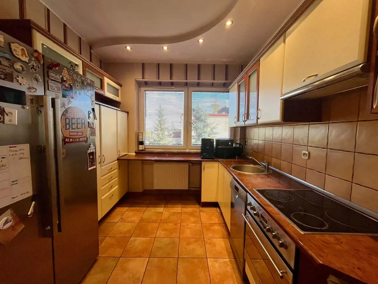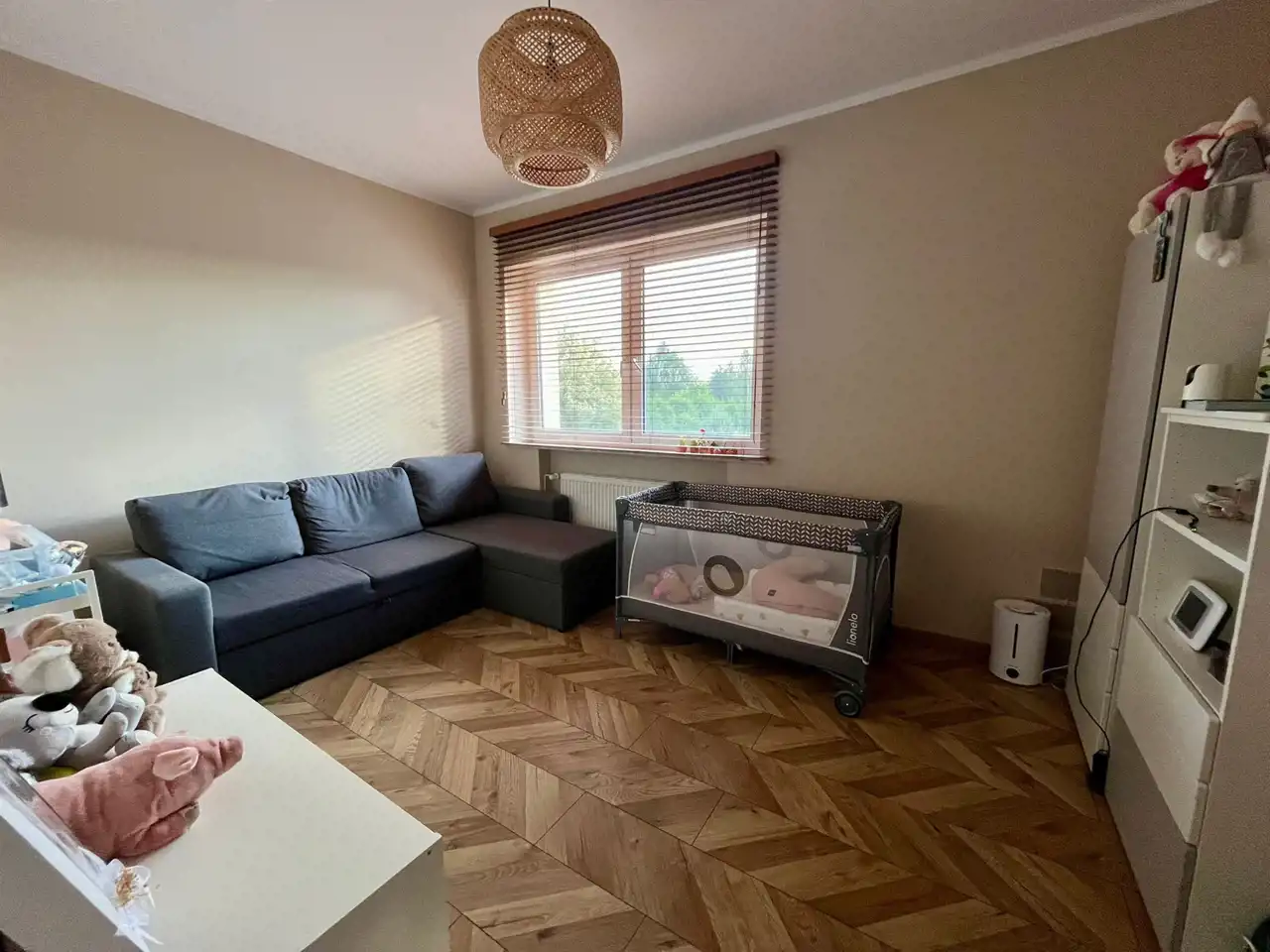 Wjazd na posesję jest możliwy trzema bramami przy czym jedna to brama wjazdowa na ogród. Dom ogrzewany jest za pomocą pompy ciepła Ferroli Omnia 12kW ( 2 lata gwarancji ). Okna PCV, na parterze w oknach zamontowane żaluzje drewniane a na piętrze żaluzje bambusowe. Budynek ocieplony, dach pokryty styropapą wysokiej jakości( w 2023r.). W cenie nieruchomości pozostaje zabudowa stała z elementami sprzętu AGD oraz jest możliwość pozostawienia części mebli. Podłogi na parterze pokryte panelami, na piętrze w pokojach pokryte panelami, w łazience i kuchni podłogi pokryte płytkami.