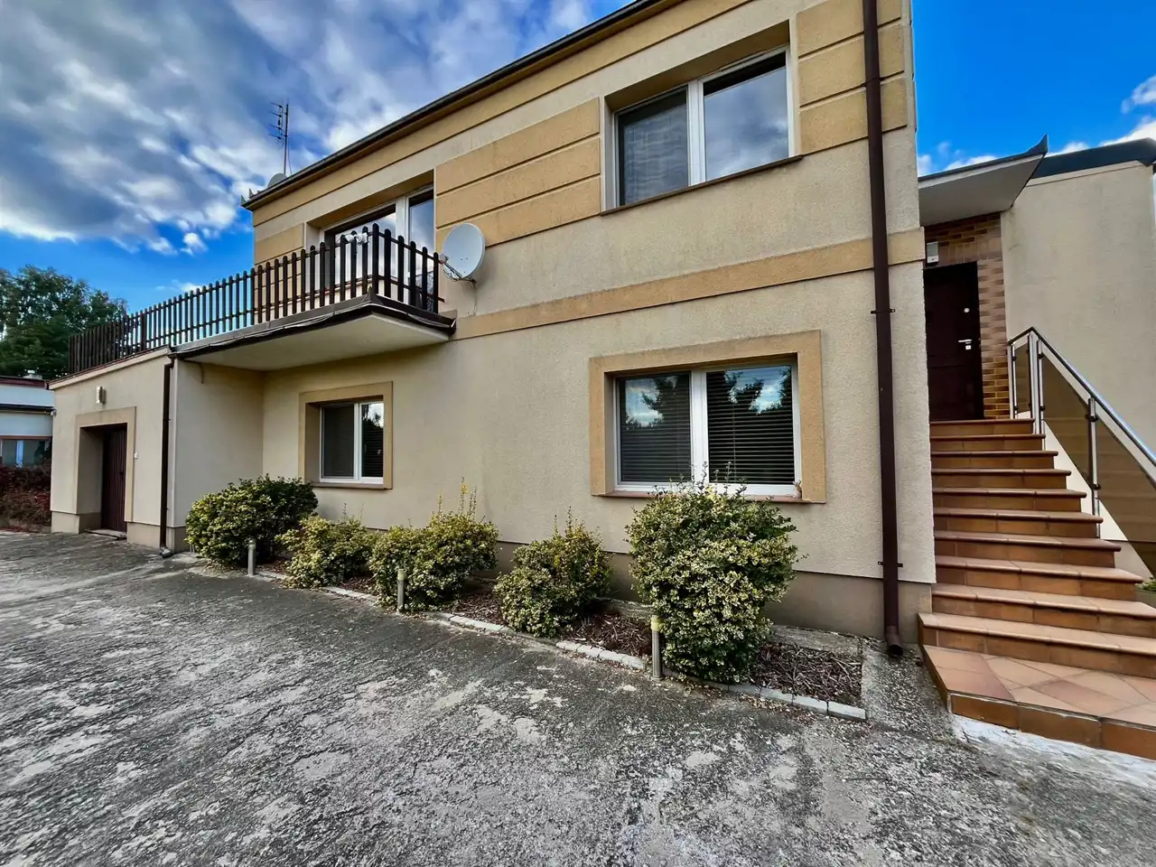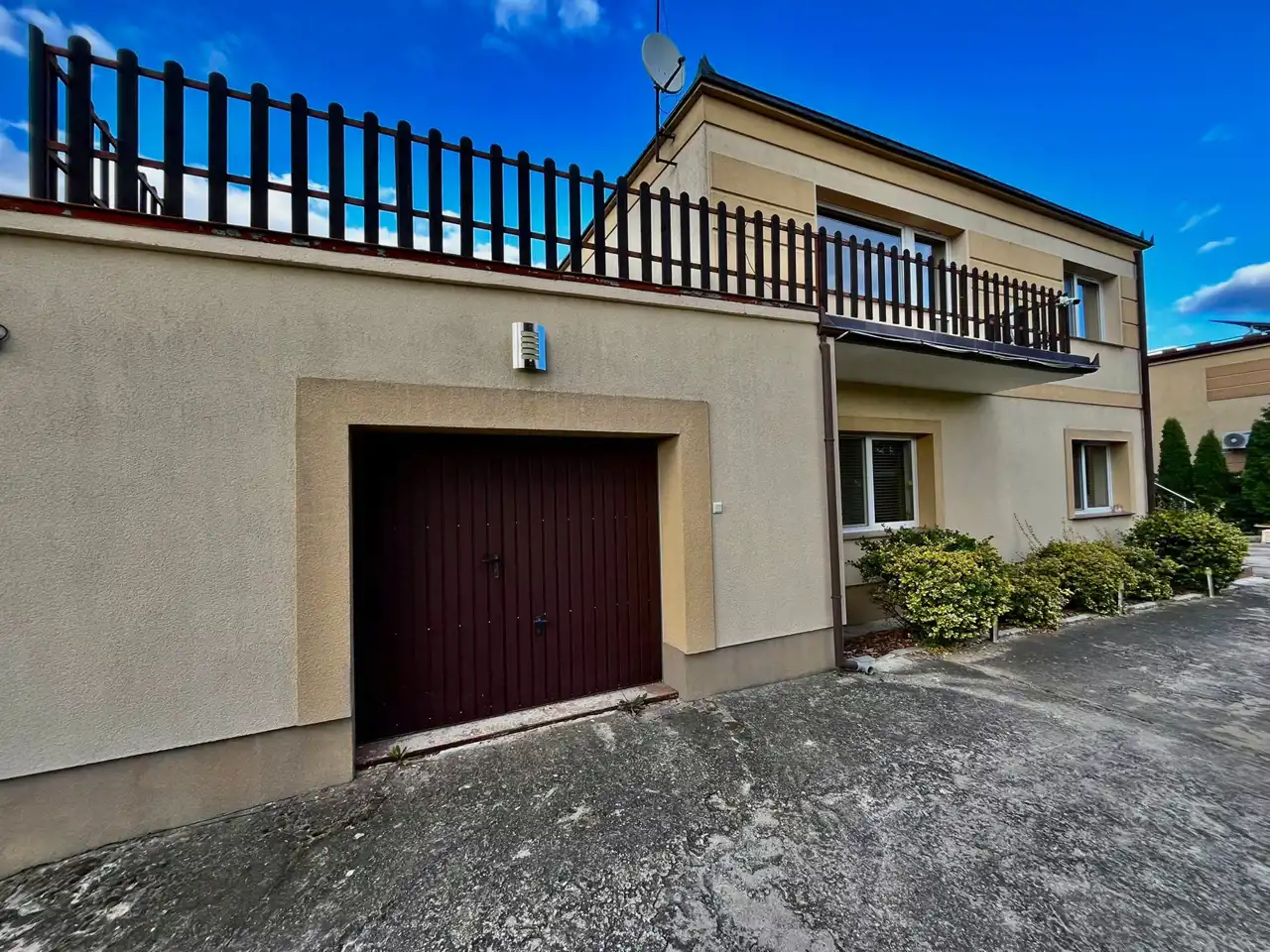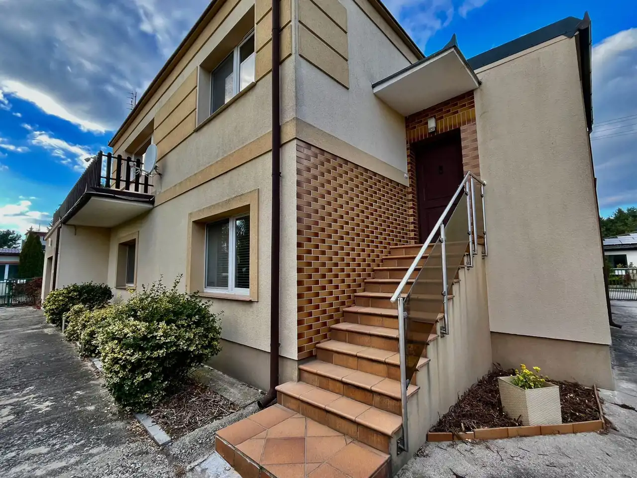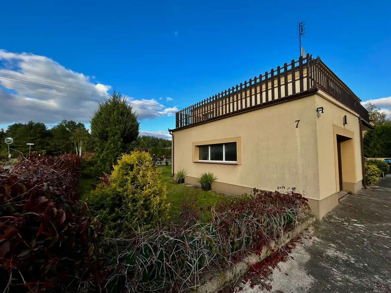 Nieruchomość składa się z parteru i piętra oraz garażu, dodatkowo osobny budynek w którym znajduje się garaż i duże pomieszczenie gospodarcze o pow. ok. 50 m2. W tylnej części budynku gospodarczego znajduje się szklarnia na terenie ogrodu. Nad garażem w bryle domu znajduje się taras do własnej aranżacji. Budynek powstała w 1982 roku.