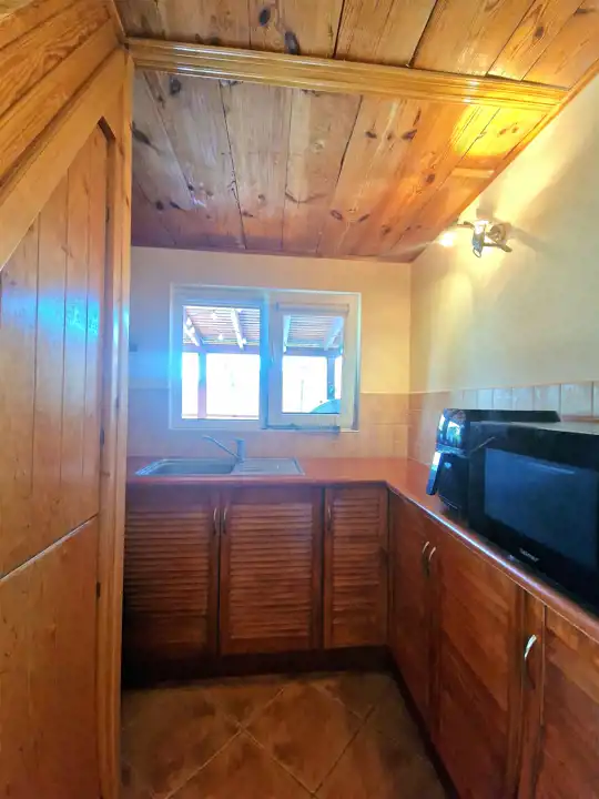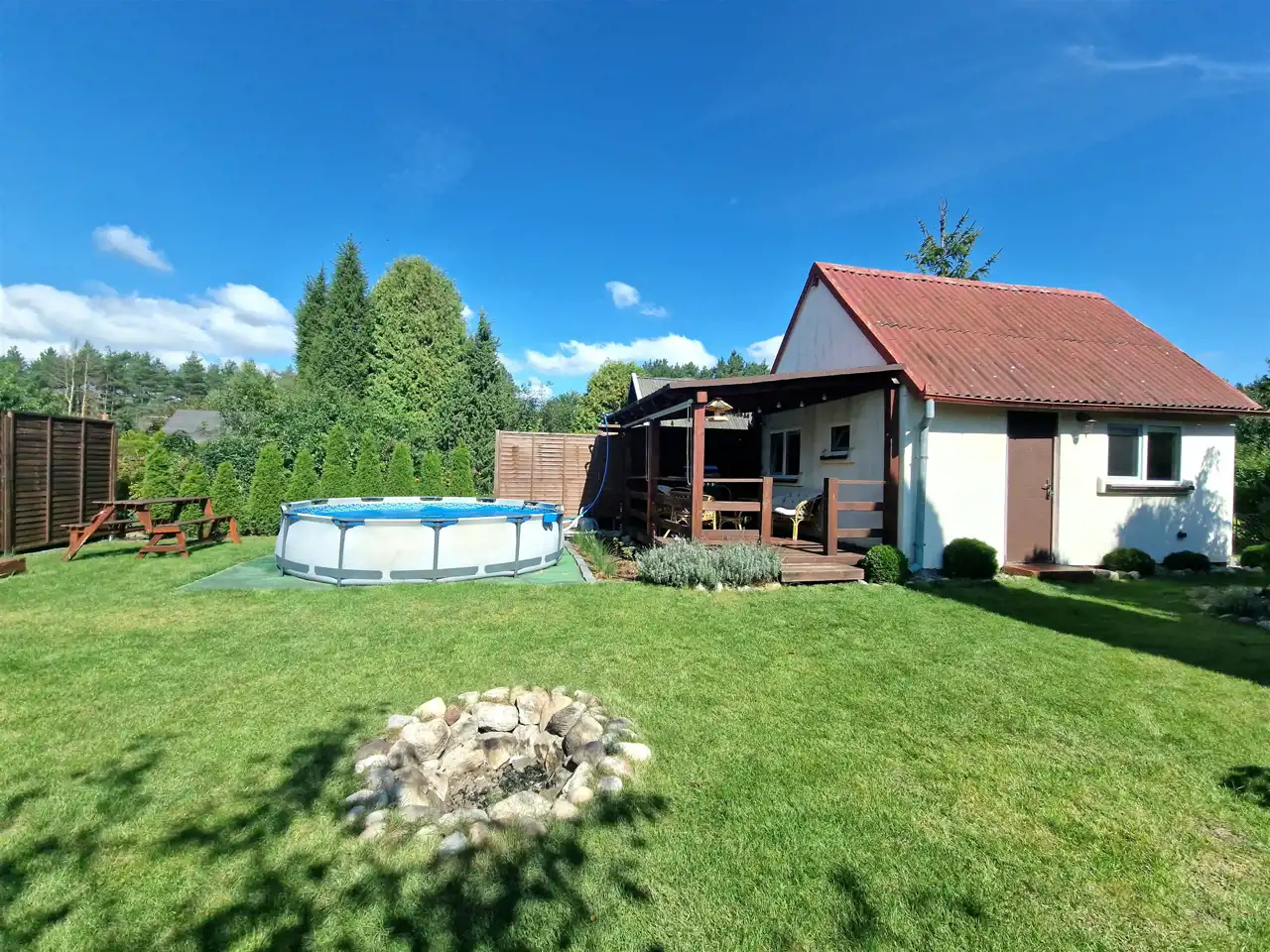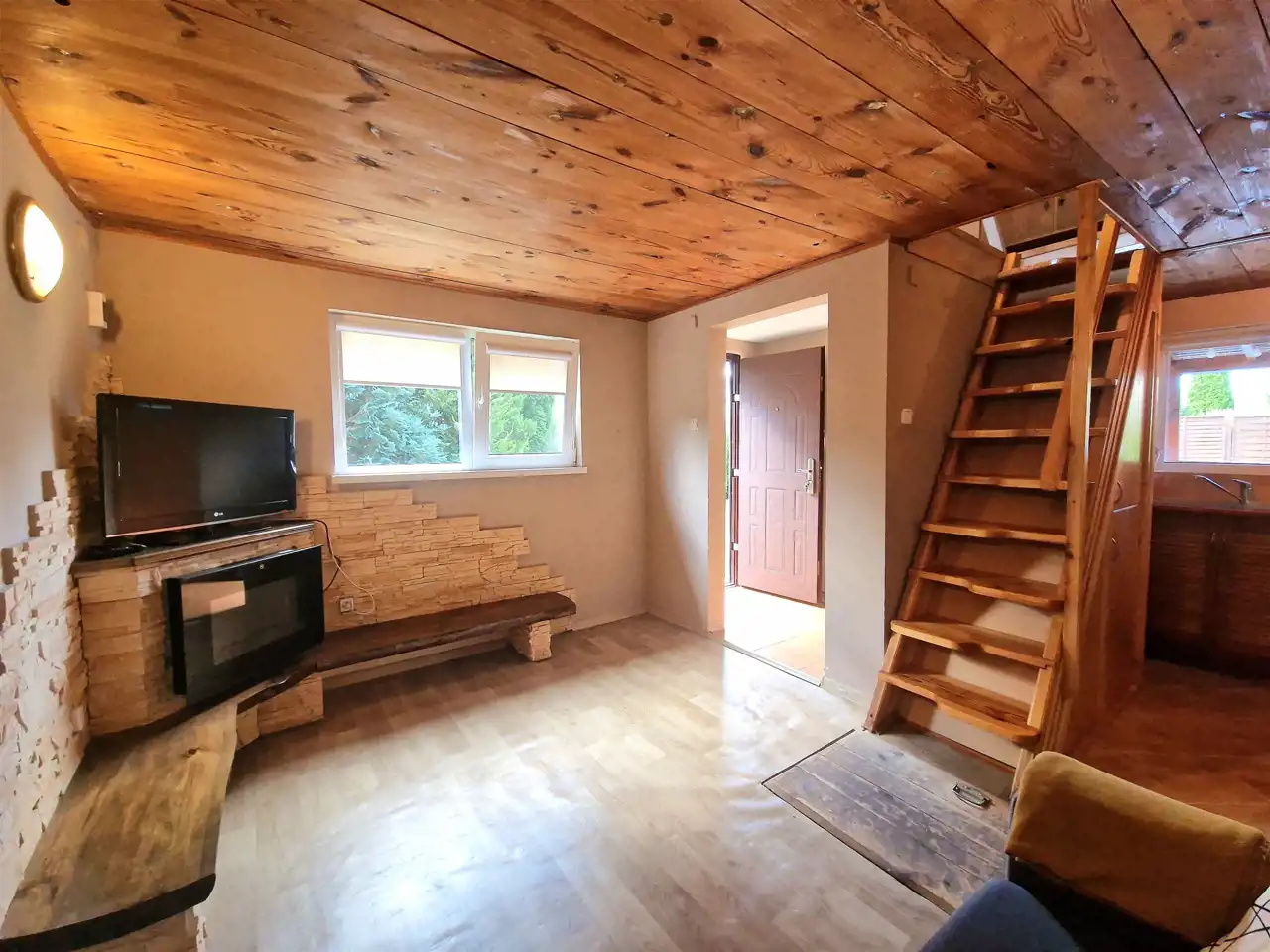 Działka jest ogrodzona i bardzo ładnie zagospodarowana. Na działce na pierwszym planie znajduje się dom murowany, z poddaszem użytkowym, częściowo podpiwniczony. Na parterze domu znajduje się aneks kuchenny wyposażony w meble kuchenne, mikrofalówkę oraz lodówko-zamrażarkę. Serce domu stanowi salon, gdzie jego główną ozdobą stanowi kominek elektryczny, który wieczorem dodaje klimatu wspólnym rodzinnym spotkaniom.