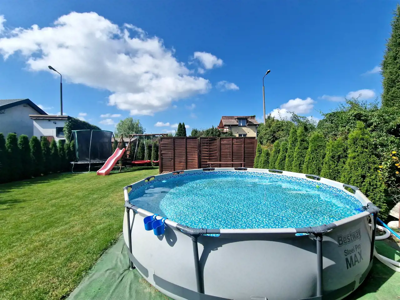 Szczególną uwagę należy zwrócić na basen z lazurową, czystą wodą o wymiarach 366x76 cm z pompą piaskową oraz własnej roboty systemem podgrzewania wody. Polega ona na wymianie chłodnej wody z basenu na nagrzaną, która znajduje się w wężownicy o długości 100 m na daszku. Gdy woda wewnątrz wężownicy nagrzeje się do temperatury ok. 50 st. Celsiusa, uruchamia się wówczas niezależna pompa, która pobiera chłodną wodę z basenu a nagrzaną wlewa do basenu. System można jednym przyciskiem rozłączyć lub wymusić jego pracę.