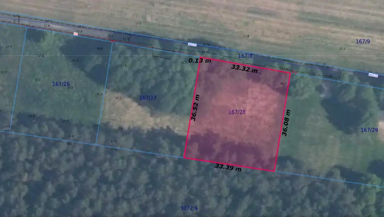 - nieprzekraczalna linia zabudowy od strony lasu - 12,00 m w przypadku ścian i dachu nierozprzestrzeniających ognia, 16,00 m w przypadku ścian i dachu rozprzestrzeniających ogień.