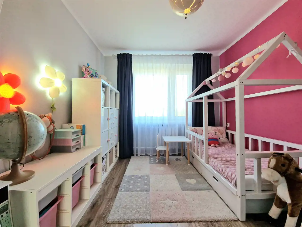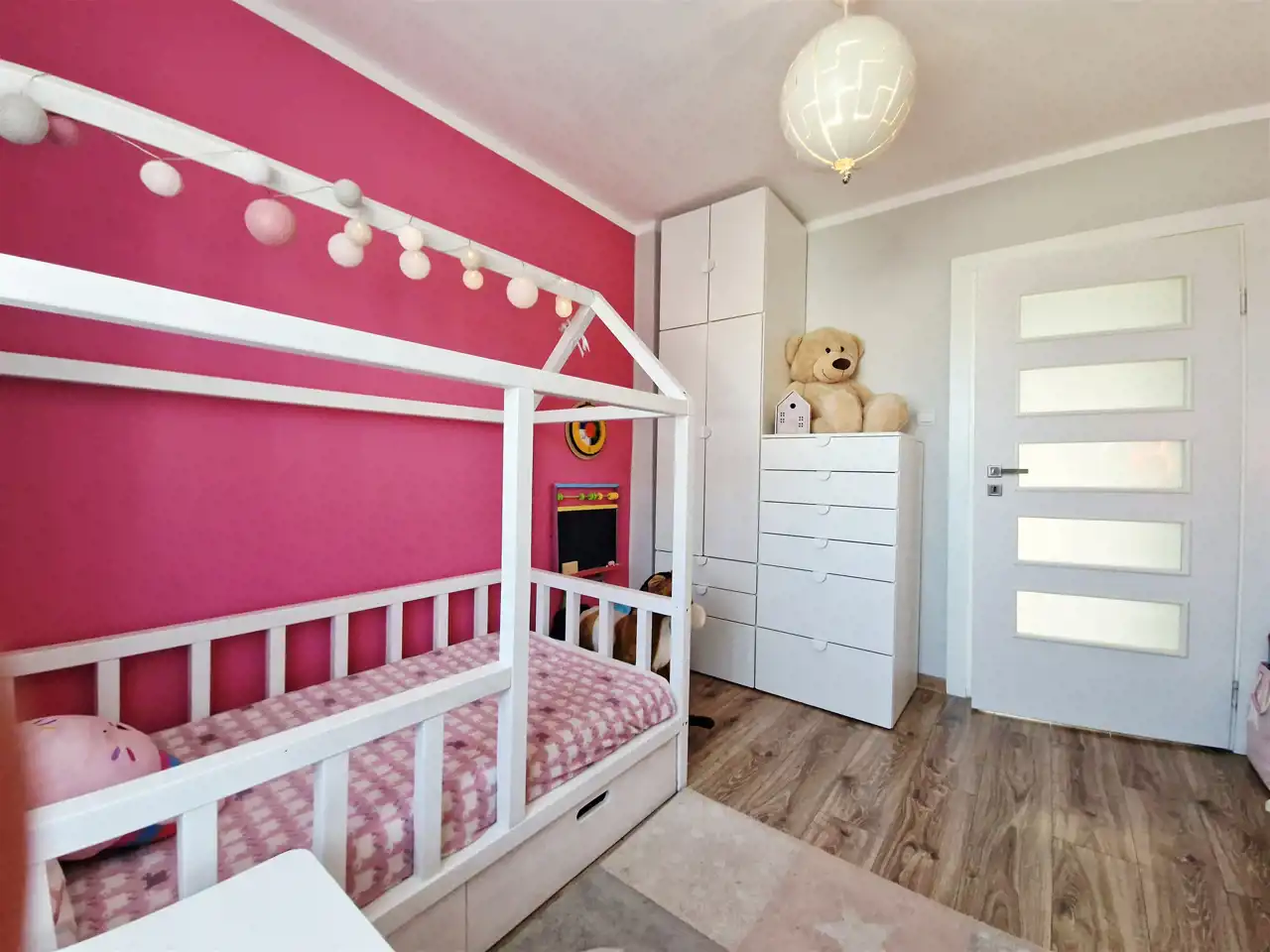 W pokoju dziecięcym jest miejsce na szafę ubraniowa, regały na zabawki oraz łóżko. (pokój ten będzie pusty).