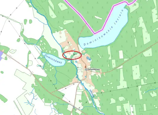 Działka o powierzchni 3000m2 w Dominikowie, gmina Drawno. Działka nie jest ogrodzona, niezagospodarowana. Sąsiaduje z rzeczką stanowiącą dopływ Drawy. Obok działki z domami rekreacyjnymi. W drodze uzbrojenie (woda, gaz, prąd). W Dominikowie jest piękna plaża nad bardzo czystym jeziorem, pole namiotowe, lasy grzybowe. W pobliżu bardzo popularne trasy kajakowe na Drawie i Korytnicy. Miejscowość o dużych walorach turystycznych dla osób pragnących spokoju.