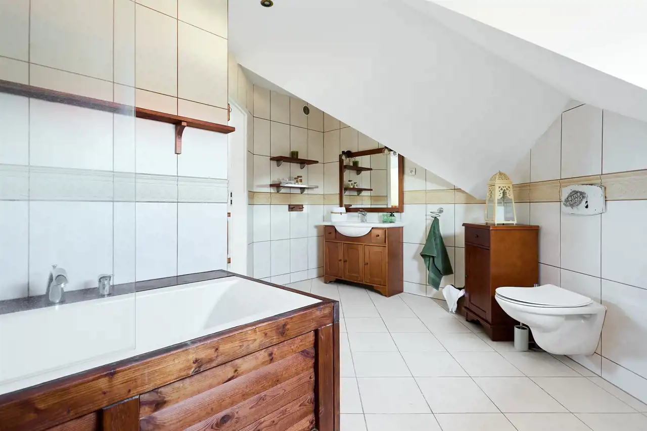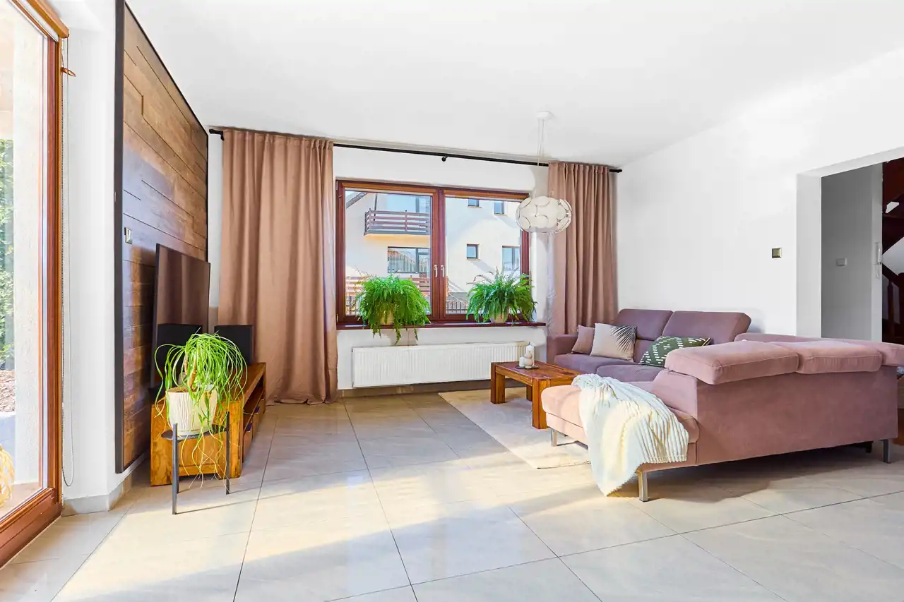Dom zadbany, solidnie zbudowany. Stan: do zamieszkania / lekkiego odświeżenia — możesz wejść i urządzać po swojemu, bez presji remontu.