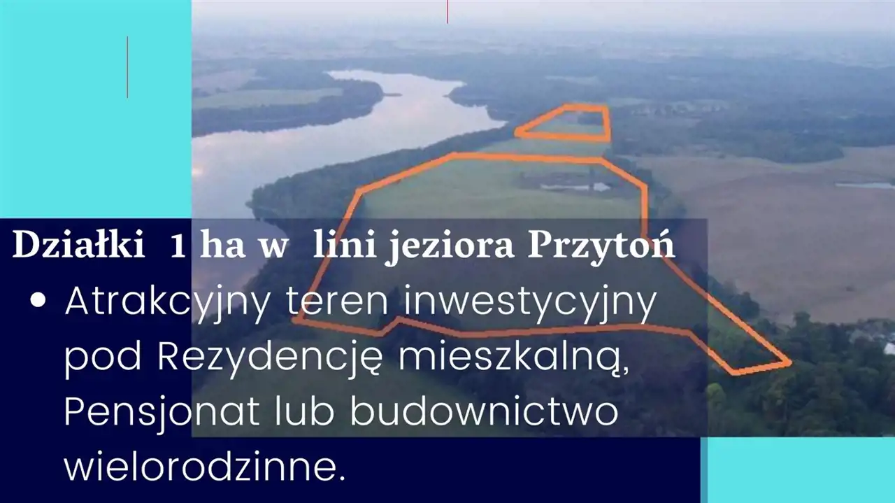 Drawsko Pomorskie w miejscowości: Przytoń. Działki 1 ha mieszkaniowe nad jeziorem Przytonko w pierwszej linii brzegowej jeziora, Atrakcyjny teren inwestycyjny pod posiadłość Rezydencję, Pensjonat, Domki letniskowe. Duży potencjał inwestycyjny z uwagi na dobrą cenę oraz docelowo możliwy podział na mniejsze działki mieszkaniowe. Cały teren w cenie porównywalnie takiej jak niewielka działka kilkuset metrowa na obrzeżach miasta. Jest energia elektryczna. Teren jest w planie MPZP gminy. Nieopodal znajduje się jeżdziecka stadnina koni.