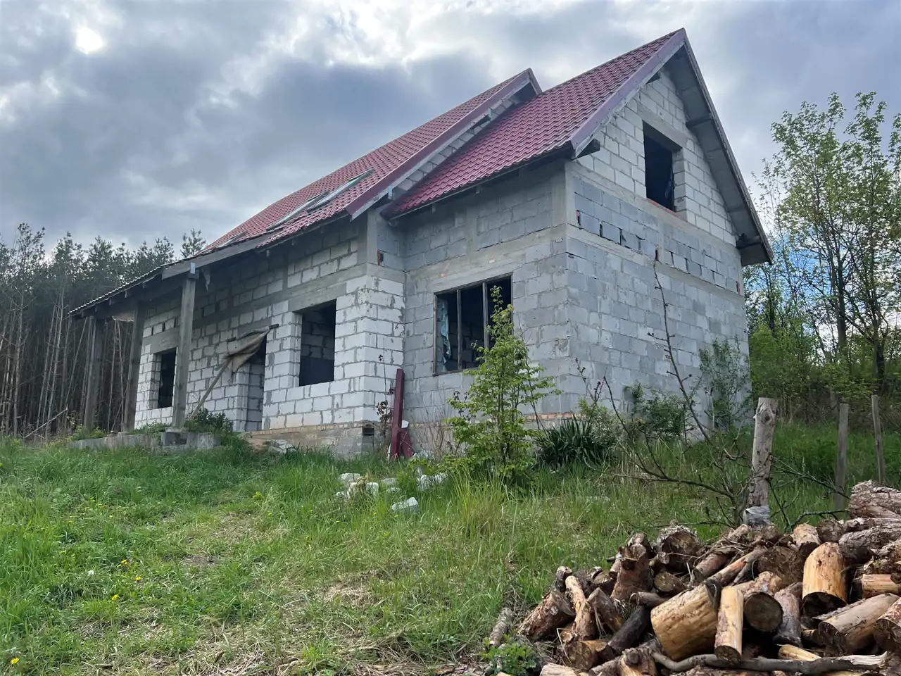 Na skraju działki posadowiony dom parterowy, niepodpiwniczony z poddaszem użytkowym. Dom w stanie surowym do wykończenia. Na parterze umiejscowiony został przedpokój prowadzący do kuchni z aneksem jadalnianym i przestronny salon. Na tej samej kondygnacji są jeszcze dwa pokoje, toaleta i pomieszczenie gospodarcze natomiast na poddaszu zaplanowano trzy pokoje, łazienkę , toaletę i garderobę.