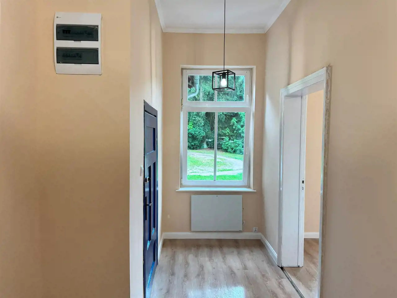 Znajdująca się na parterze czterorodzinnego domu kawalerka o powierzchni 39,7 m2 składa się z dużego, niezwykle jasnego pokoju, o powierzchni 26 m2, do którego przedostaje się niezliczona ilość światła słonecznego przez bardzo duże okna; odrębnej kuchni oraz stylowej łazienki wykończonej wodoodpornymi panelami. Do mieszkania przynależy piwnica o powierzchni 4,5 m2, a także murowany budynek gospodarczy o powierzchni 28,1 m2 mający ogromny potencjał do zaaranżowania go według własnych potrzeb, na przykład na garaż. Wejście do nieruchomości znajduje się od strony podwórka i mimo usytuowania kawalerki w domu czterorodzinnym, to wejście współdzielone jest wyłącznie z jednym lokalem znajdującym się na parterze, co sprawia, iż zapewniony jest pełen komfort oraz kameralność.