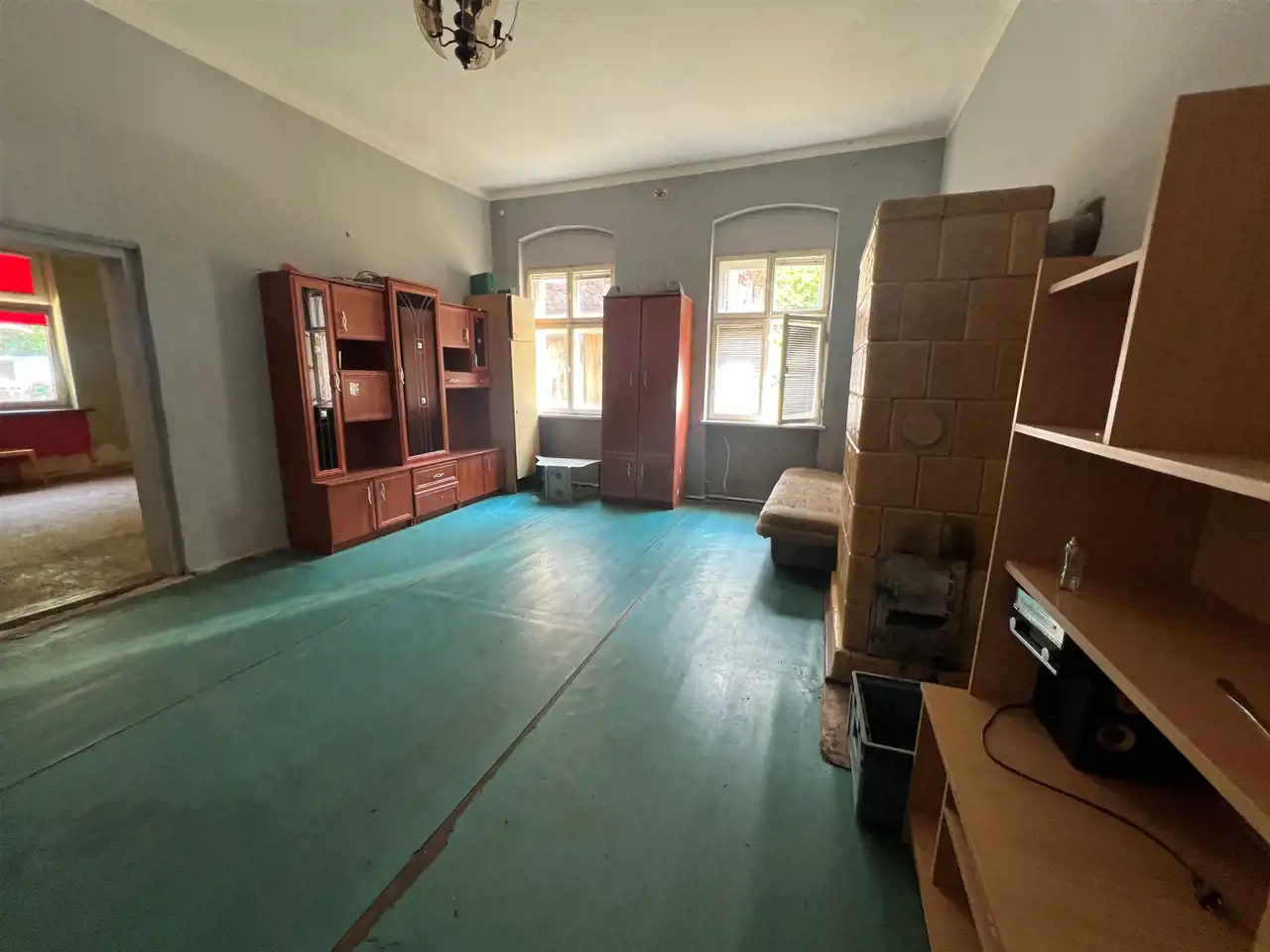 Mieszkanie składa się z dwóch przestronnych pokoi, jasnej kuchni,skrytki, która może spełniać funkcję spiżarni łazienki oraz przedpokoju i werandy. Do mieszkania przynależy dodatkowy pokój na poddaszu o powierzchni użytkowej 24m2. Lokal mieszkalny ogrzewany przez piece kaflowe. Mieszkanie wymaga remontu, ale dzięki temu można zaaranżować przestrzeń według własnego gustu i potrzeb. Mieszkanie sprzedawane jest wraz z murowanym budynkiem gospodarczym o powierzchni zabudowy 76m2 oraz działką o powierzchni 658m2 wykorzystywaną jako podwórko i ogród przydomowy. Działka posiada nieregularny kształt i jest w całości ogrodzona.