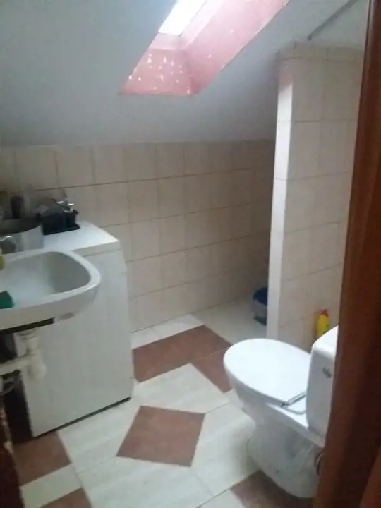 Na piętrze niezależne mieszkanie: pokój, kuchnia, łazienka.