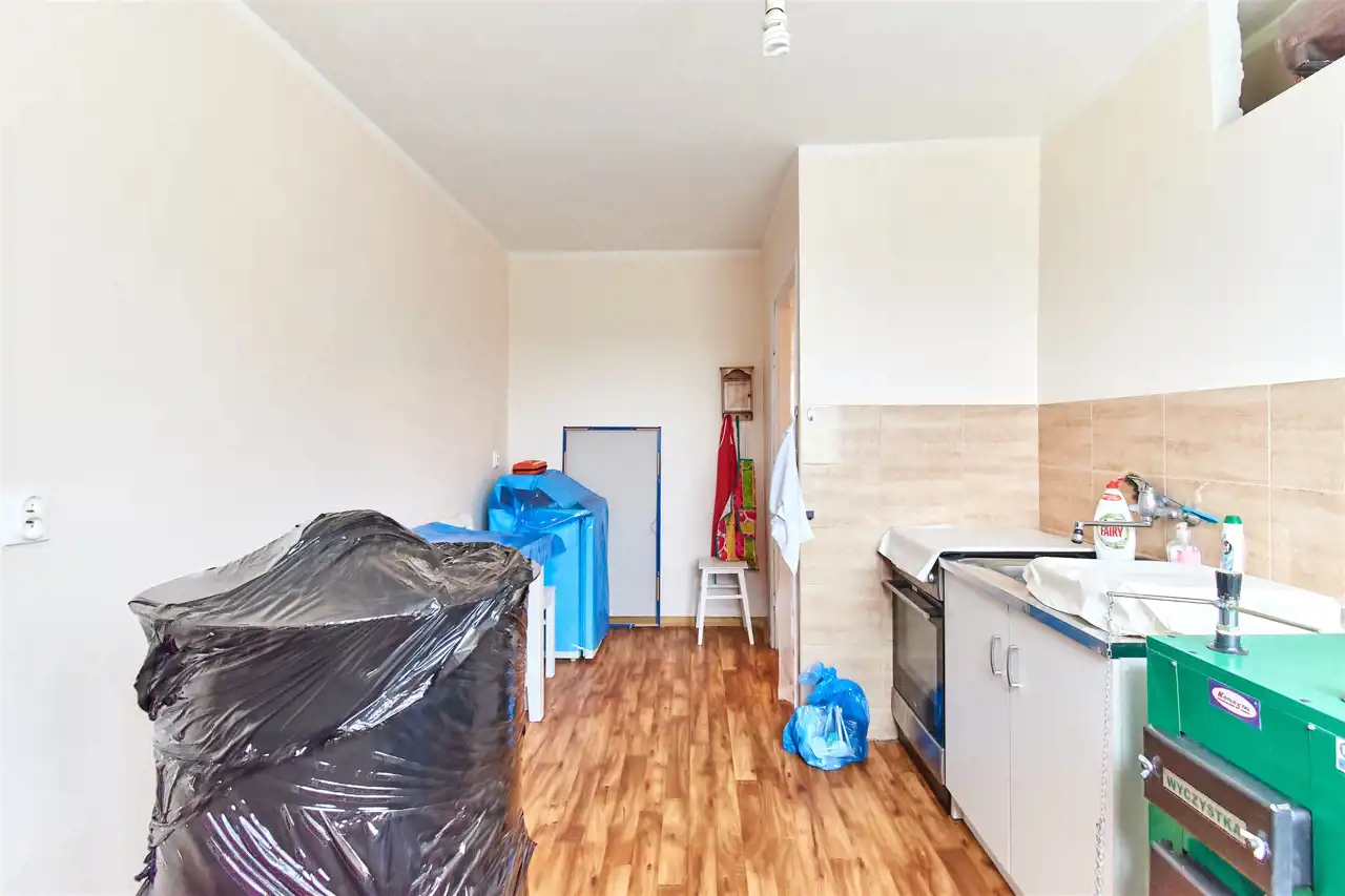 W skład metrażu nieruchomości wchodzą: pokój dzienny, sypialnia, kuchnia, korytarz i łazienka.