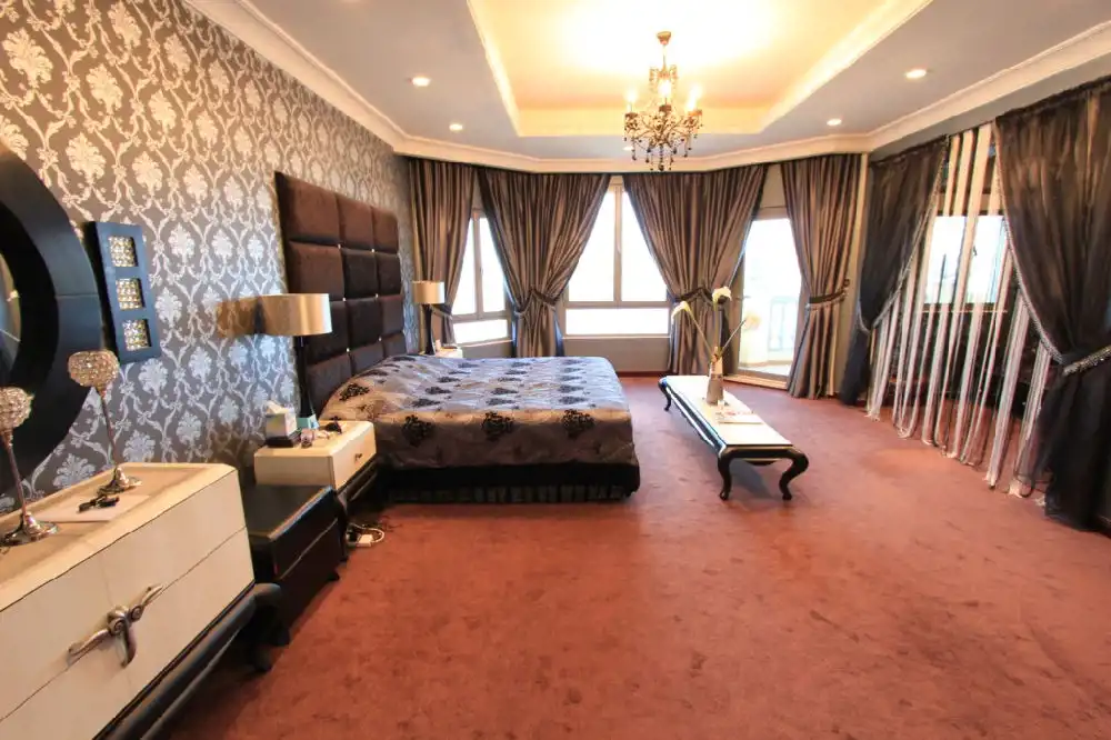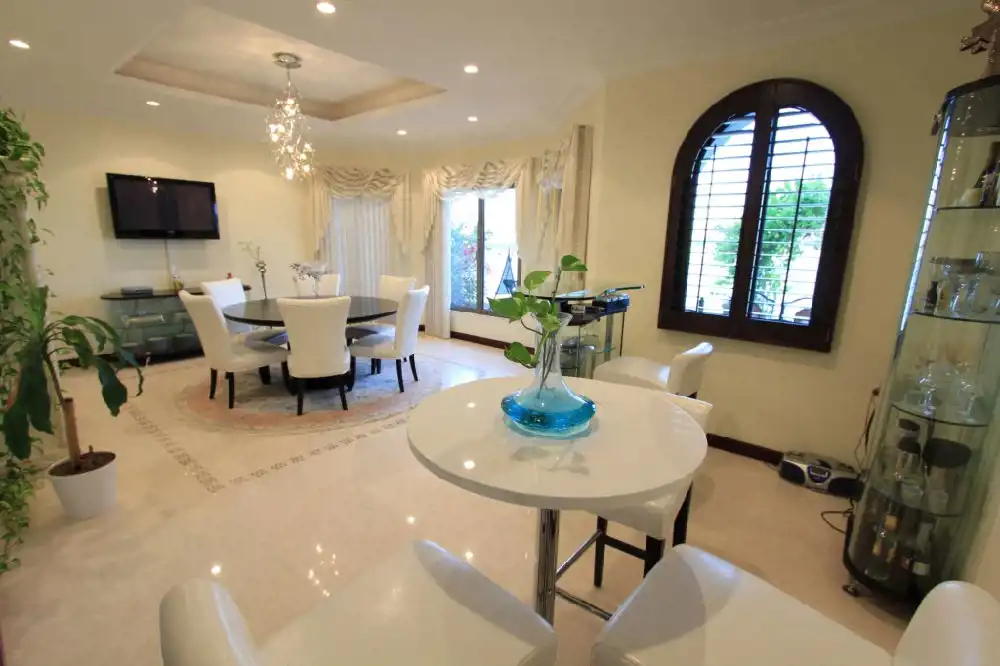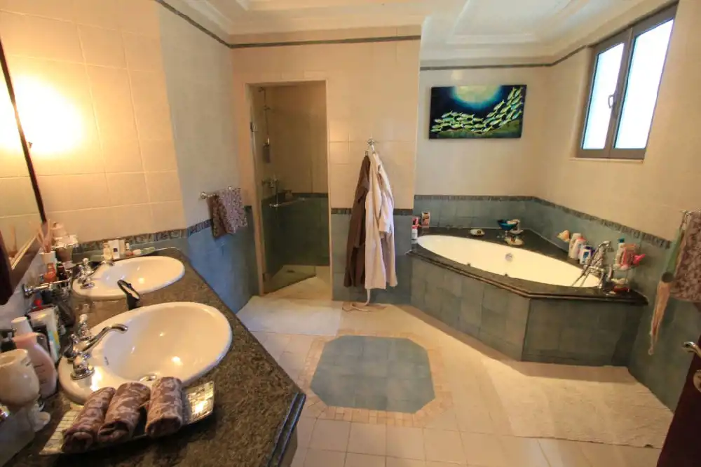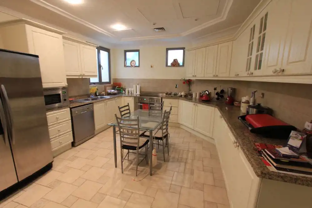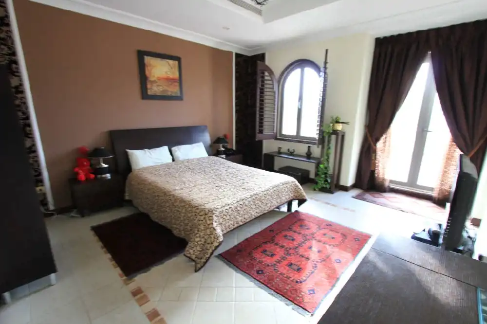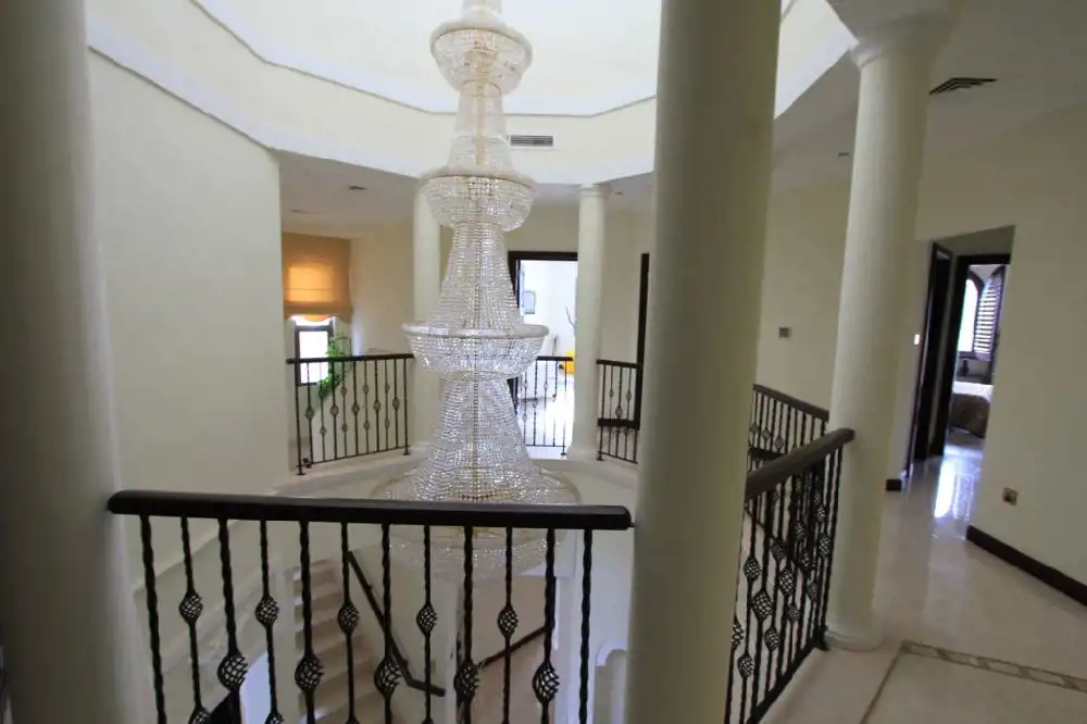 Na parterze znajduje się jedna sypialnia z dostępem do ogrodu, oddzielny salon, jadalnia i kuchnia. Dodatkowo znajdują się pokój dla pokojówki z łazienką, pralnią i schowkiem oraz toaleta dla gości. Na pierwszym piętrze rozmieszczone są trzy sypialnie oraz sypialnia główna. Wszystkie pokoje posiadają przylegające do nich łazienki. W sypialni dostępny jest mały balkon z fantastycznym widokiem na morze. Dzięki bliskości morza właściciel będzie mógł cieszyć się piaszczystą plażą i krystaliczną wodą. Ze względu na doskonałą lokalizację jaką jest właśnie wyspa Palm Jumeirah istnieje możliwość dojazdu do wielu atrakcji Dubaju. Na końcu wyspy znajduje się Atlantis Hotel (jeden z dwóch istniejących na świecie) z fantastycznym parkiem wodnym, klubem dla dorosłych i jedynym w Dubaju klubem dla nastolatków. Oprócz rozrywek można również spróbować menu jednej z wielu dostępnych w hotelu najwyższej klasy restauracji. Zaledwie 10 minut jazdy od posiadłości znajduje się słynne centrum handlowe Mall of The Emirates z jedynym w Emiratach sztucznym stokiem narciarskim a w kolejne 10 minut można dotrzeć do największego centrum handlowego na świecie Dubai Mall oraz fenomenalnego budynku Burj Khalifa gdzie od zachodu słońca co pół godziny można podziwiać słynny pokaz fontann. Fani golfa w zaledwie 5 min mogą dotrzeć do najlepszych na świecie pól golfowych Montgomery Golf Course. Istnieje również możliwość zacumowania jachtu w nowo otwartej marinie.