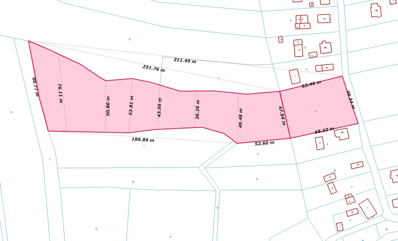 Istnieje możliwość zakupu także / lub przylegającej działki o powierzchni 32 ary (3200 m2) położonej niżej, w płaskim terenie, z bezpośrednim dostępem do drogi asfaltowej.
