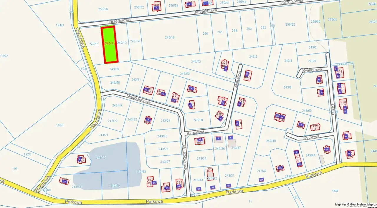 Polecam na sprzedaż działkę 242/12 o powierzchni 1164 m², budowlaną, zlokalizowaną w Ceradzu Dolnym, ul. Jarzębinowa, gm. Duszniki.