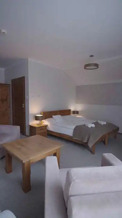 13 komfortowych pokoi – w tym 6 przestronnych apartamentów (pokój dzienny + sypialnia) oraz 7 pokoi premium Restauracja z panoramicznym widokiem – sala na 50 miejsc z klimatycznym kominkiem, który tworzy ciepłą, górską atmosferę
