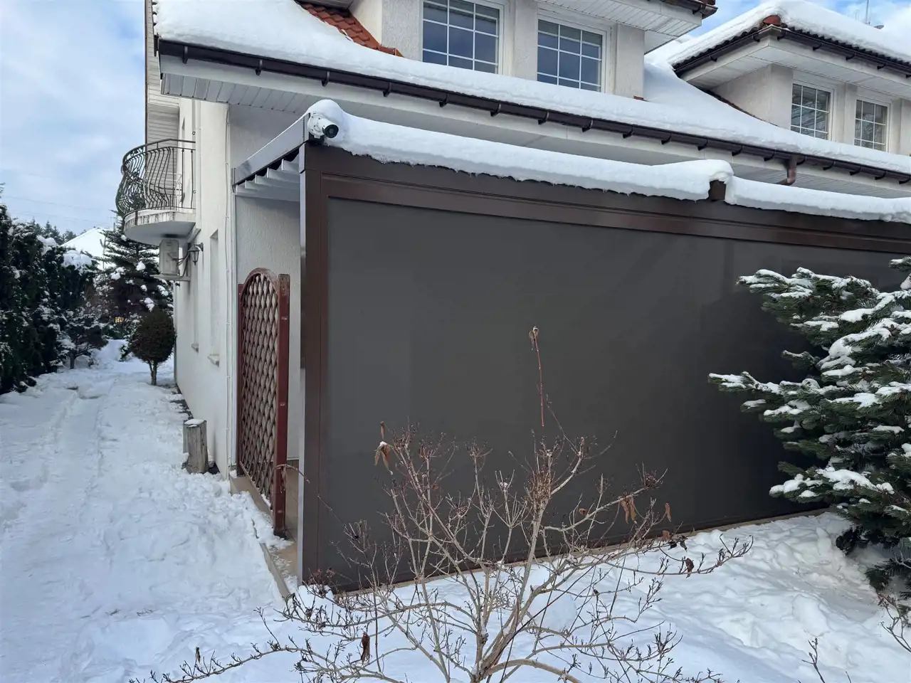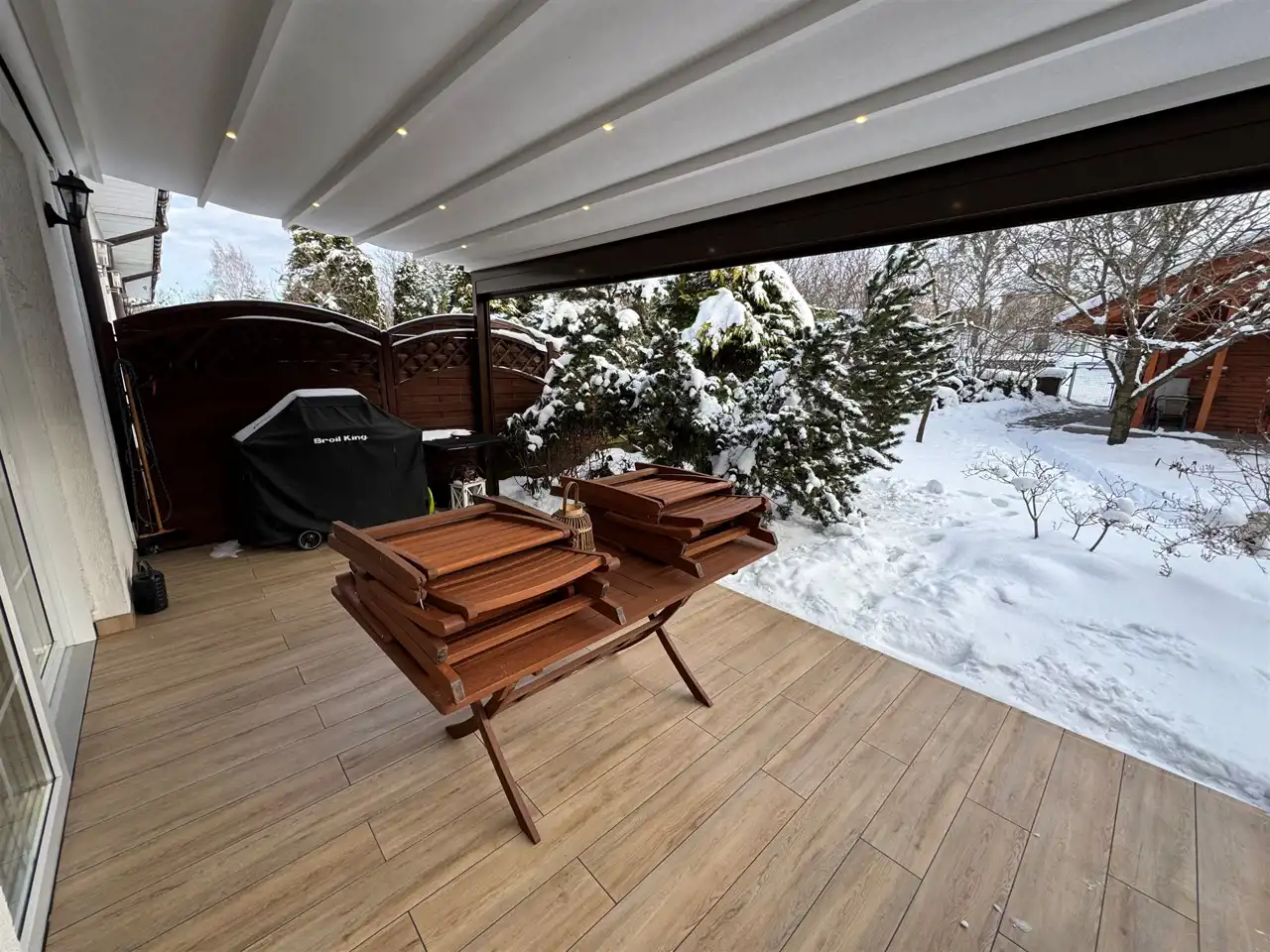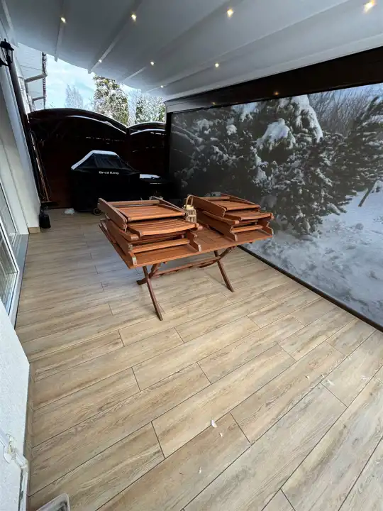 Większa prywatność dzięki skrajnemu położeniu – doskonałe miejsce na odpoczynek, zabawy dzieci i spotkania przy kawie. Dodatkowo taras zabudowany roletami automatycznie otwieranymi.