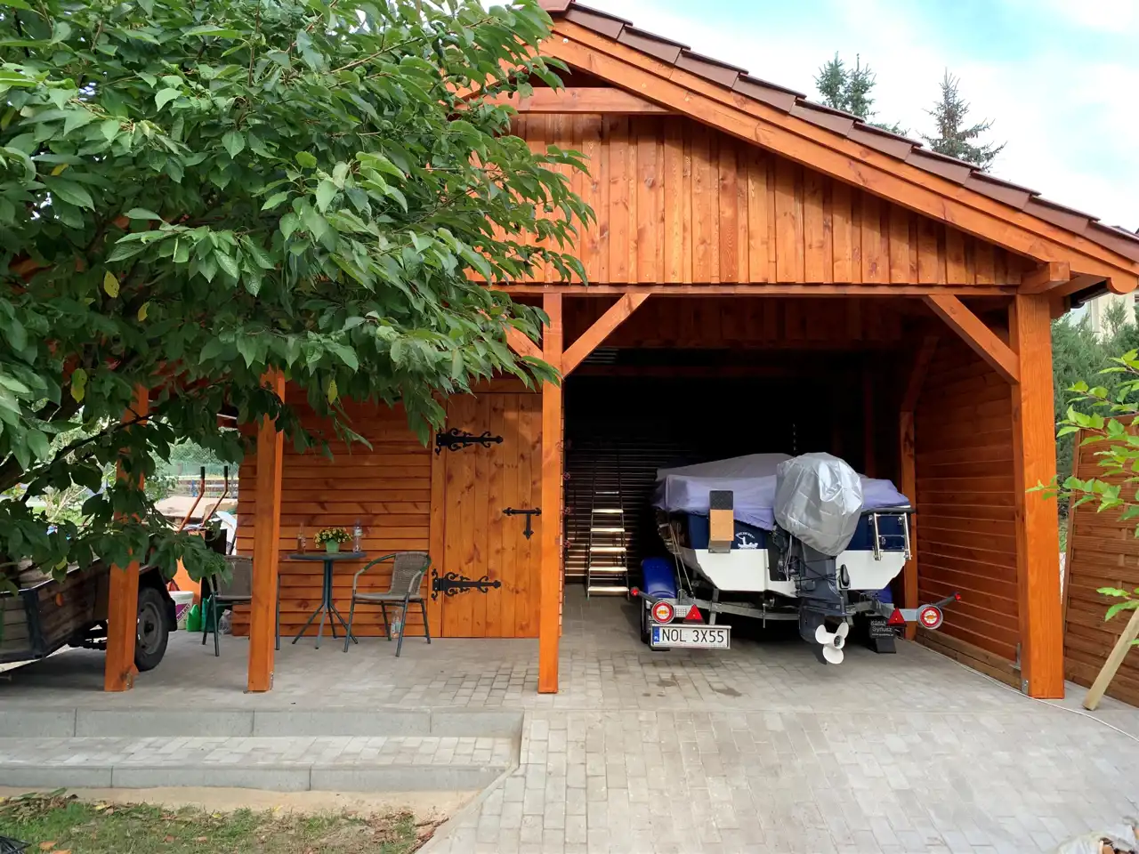 Budynek gospodarczy o pow. ok. 35 m² wybudowany w 2019 roku, przeznaczony do parkowania samochodu oraz przechowywania sprzętu ogrodowego i innych elementów związanych z utrzymaniem posesji. - Wyciszenie ścian od strony sąsiada