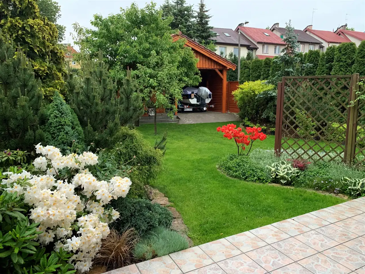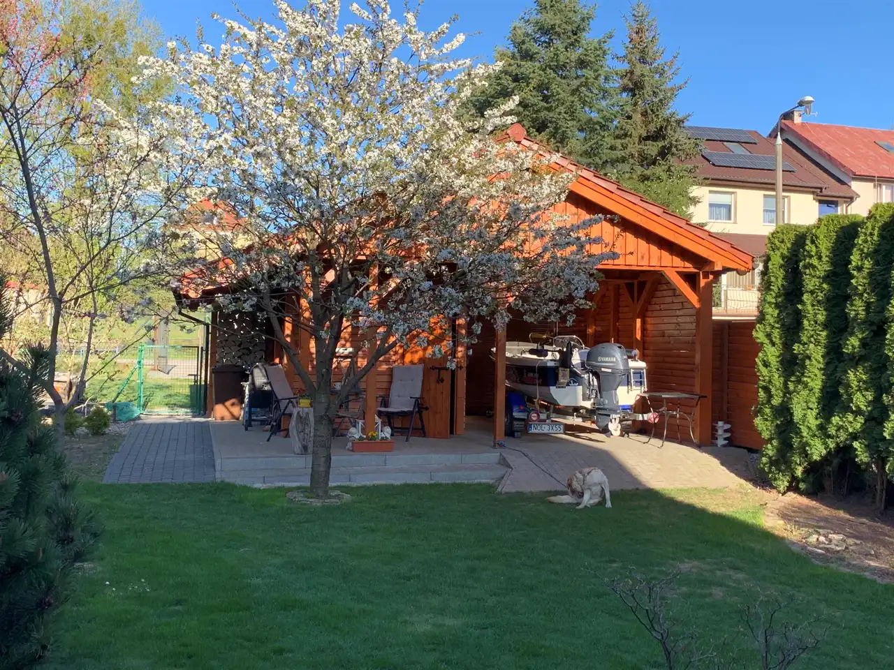 Ocieplone, ogrzewane, wykończone panelami, oknami – idealne jako pokój zabaw, biuro, pracownia. - Zadbany ogród z tarasem
