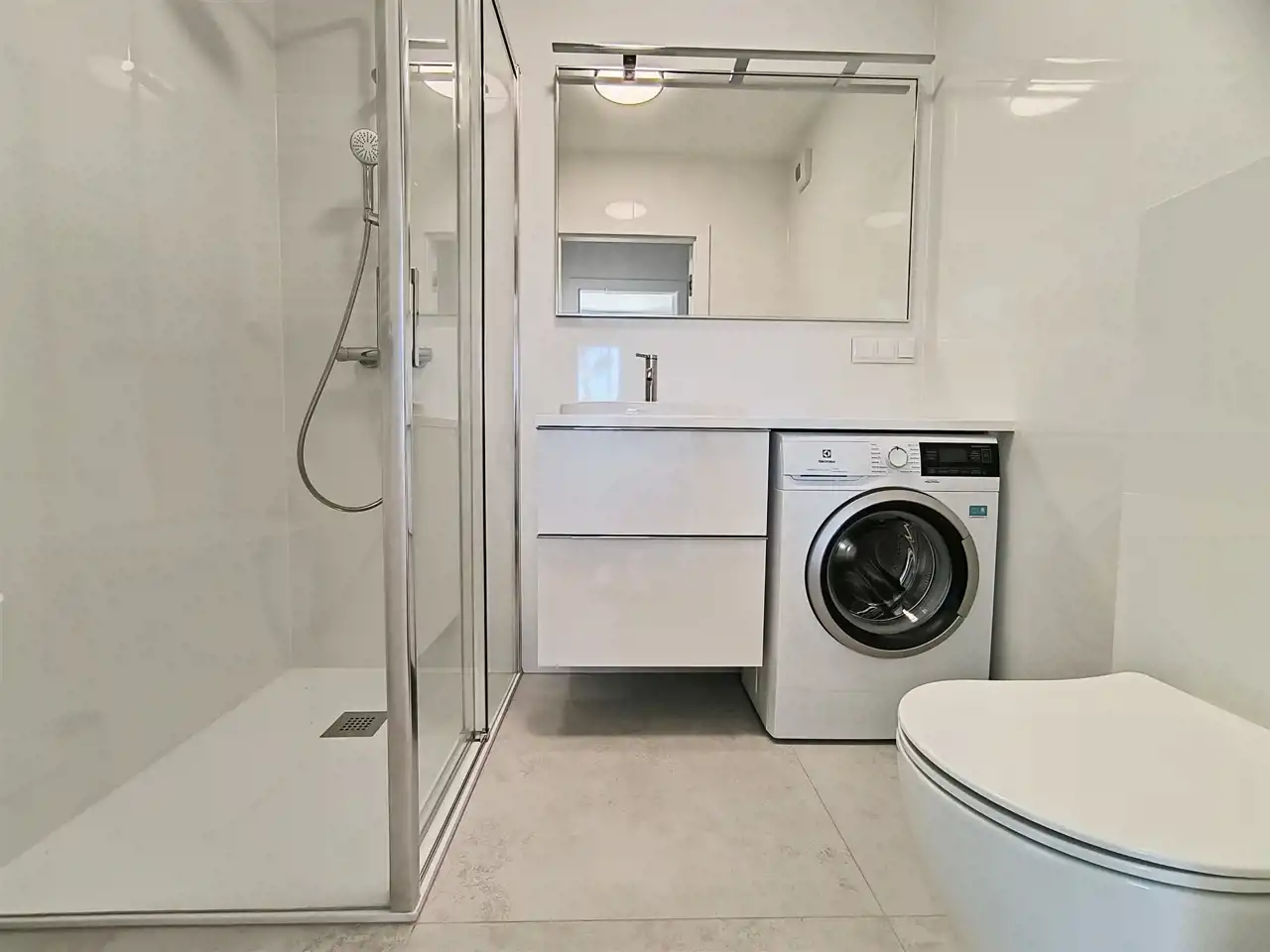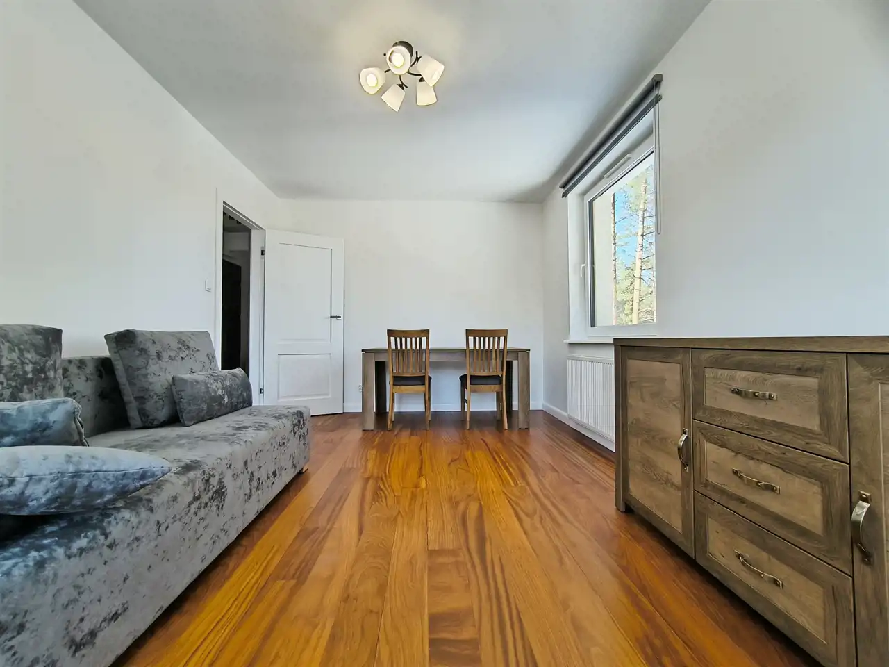Wyposażenie: Salon-kanapa, stół z krzesłami, komoda, Sypialnia- łóżko sypialniane, szafa garderobiana, Kuchnia- zabudowa kuchenna, zmywarka, piekarnik, płyta indukcyjna, lodówko-zamrażarka, okap, stół krzesłami, Łazienka- pralka, kabina prysznicowa, umywalka, lustro, wc.