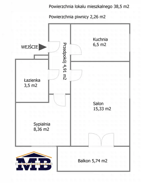 - Charakterystyka mieszkania 38.5 m2, 2 pokoje