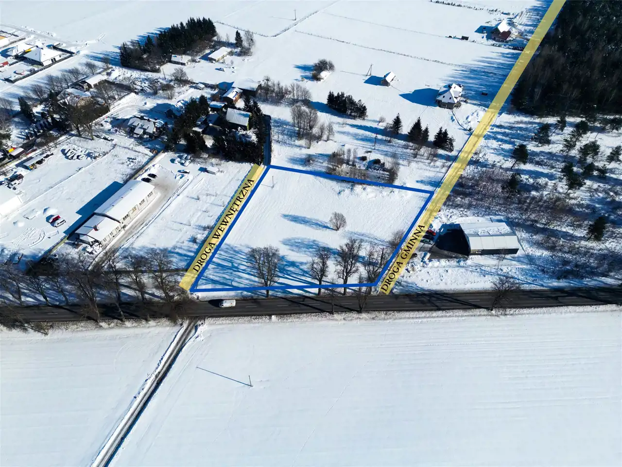 - Istniejące, dwa legalne zjazdy z drogi wojewódzkiej: możliwość wjazdu z drogi gminnej lub drogi wewnętrznej