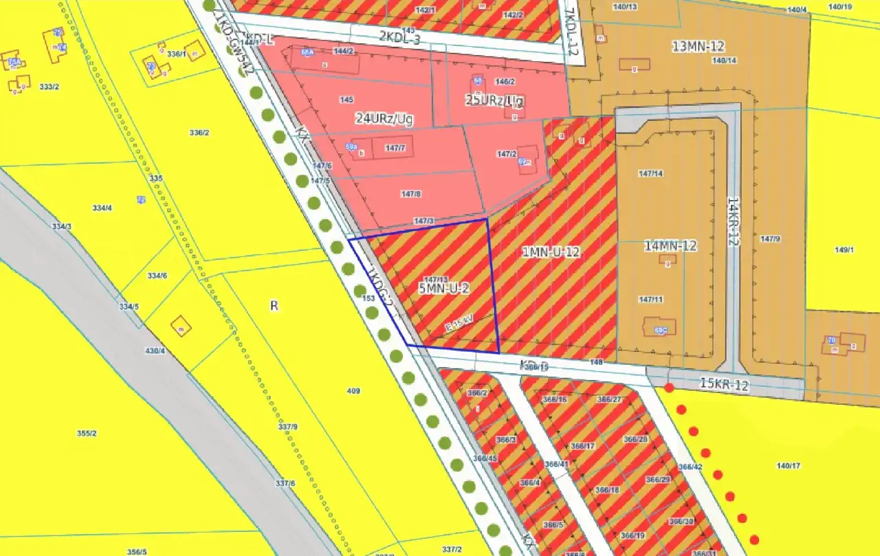 - Teren 5MN-U-2 – zabudowa mieszkaniowa jednorodzinna lub usługowa