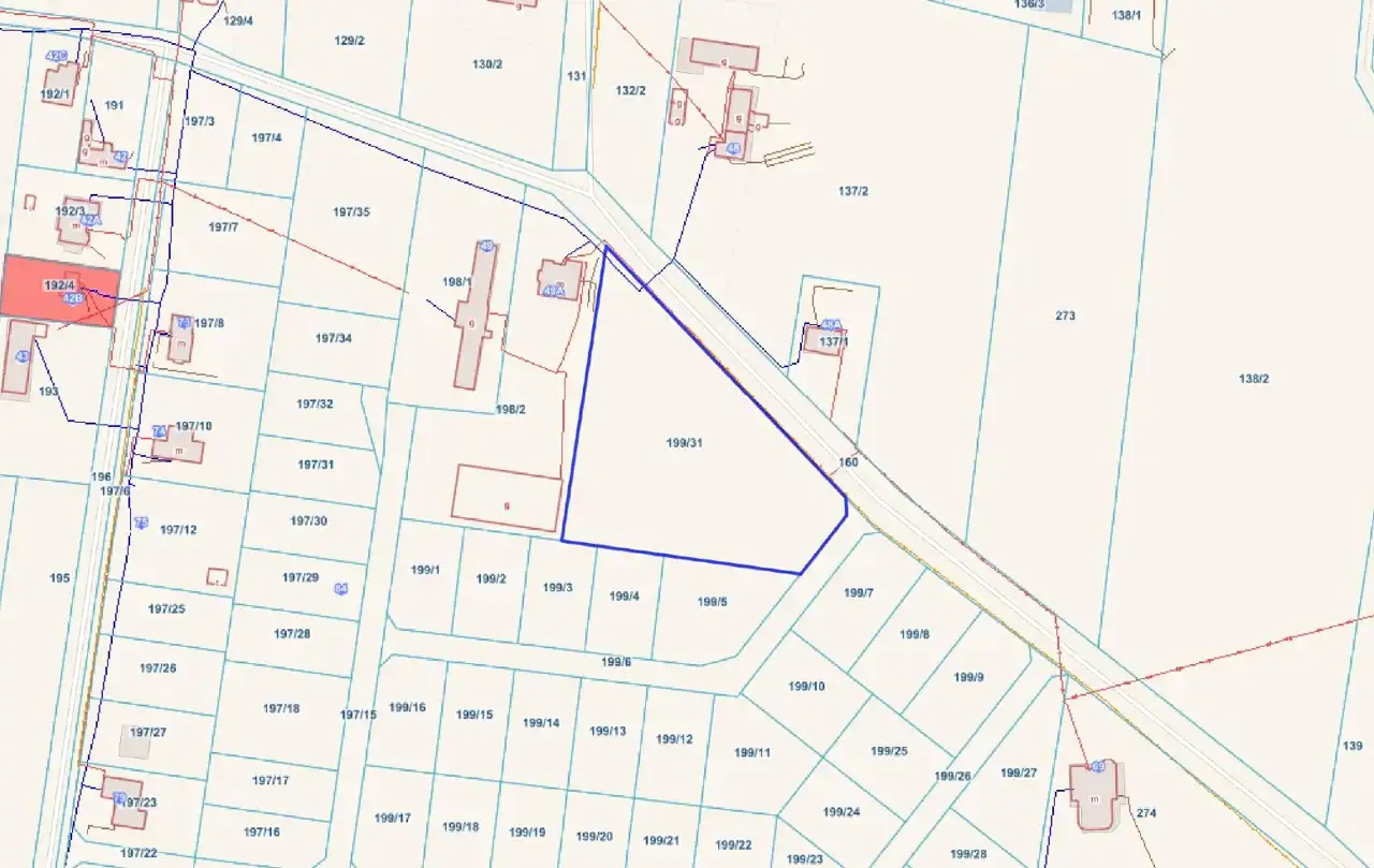 Działka nr 199/31 o powierzchni 7635 m² położona jest w Pierławkach (gmina Działdowo). Ma 134 metry frontu przy drodze gminnej – to ogromny atut przy planowaniu zjazdu, placu manewrowego i ekspozycji firmy.