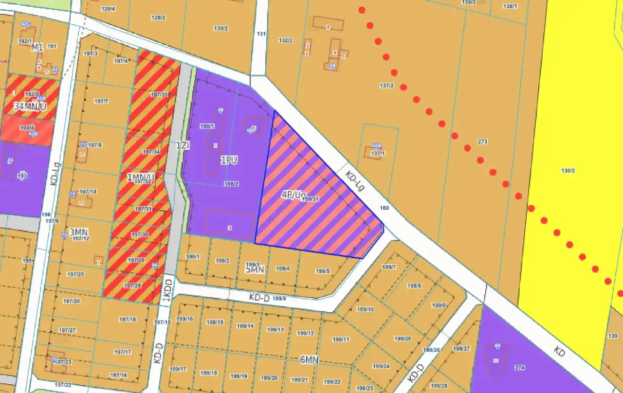 - MPZP 4P/UG — podstawowe przeznaczenie: zabudowa produkcyjna + usługi gospodarcze. Dopuszczalna funkcja mieszkaniowa dla właściciela (mieszkanie w budynku zakładu lub wolnostojący dom w linii zabudowy).