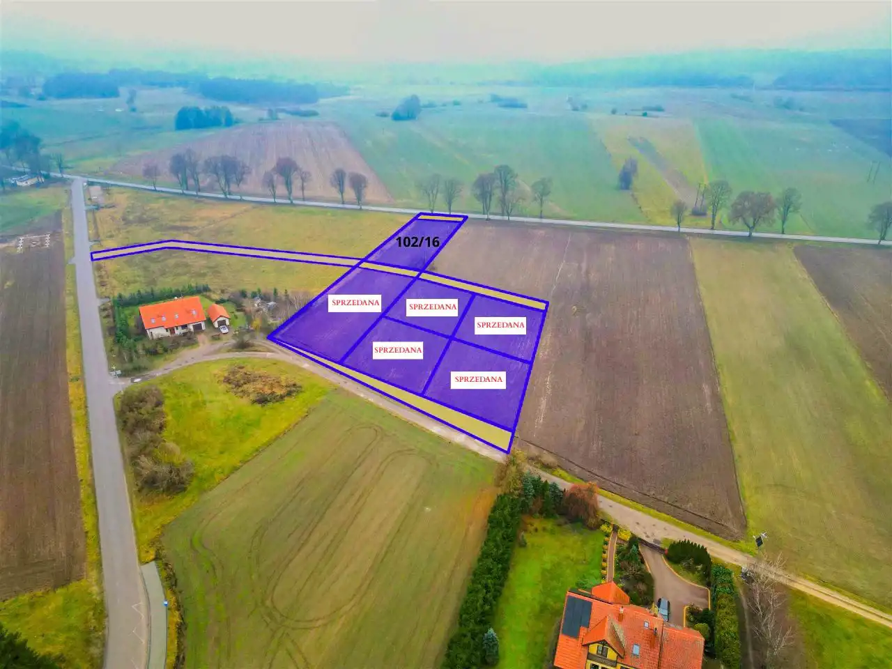 - Działki nr 101/2, 101/3, 101/5, 101/6, 102/18 – SPRZEDANE