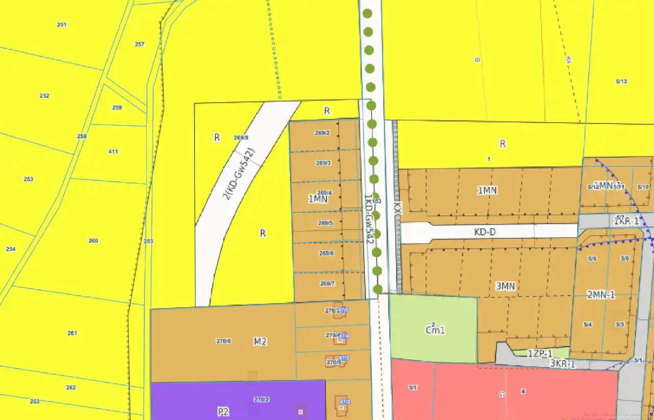 - Przeznaczenie: 1 MN – zabudowa mieszkaniowa jednorodzinna zgodnie z MPZP