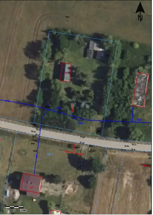 - Media Woda: na działce; Kanalizacja: szambo; Prąd: jest