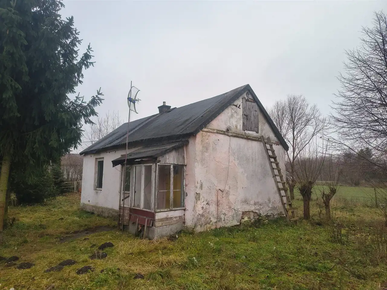 Tylko u nas! Na sprzedaż stary dom ok. 50m2 na dużej działce 20ar z podłączonym prądem i wodociągiem. Dom jest przedwojenny, wykonany w starej technologii, od lat niezamieszkały. Dach pokryty papą.