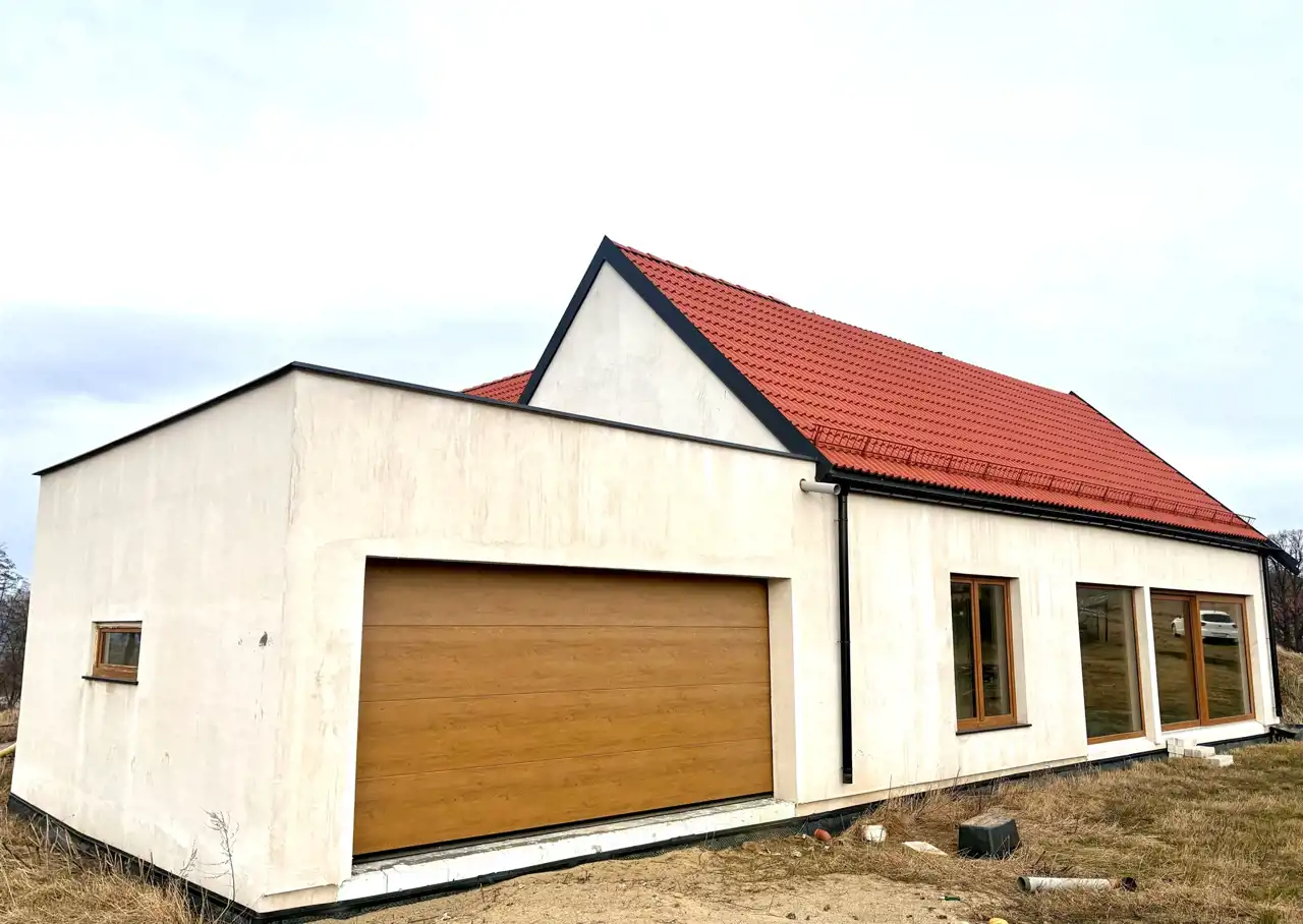 Dom parterowy z użytkowym poddaszem wykonany został w technologii drewnianej, z naciskiem na energooszczędność, trwałość oraz komfort codziennego użytkowania.