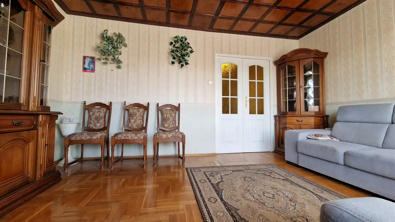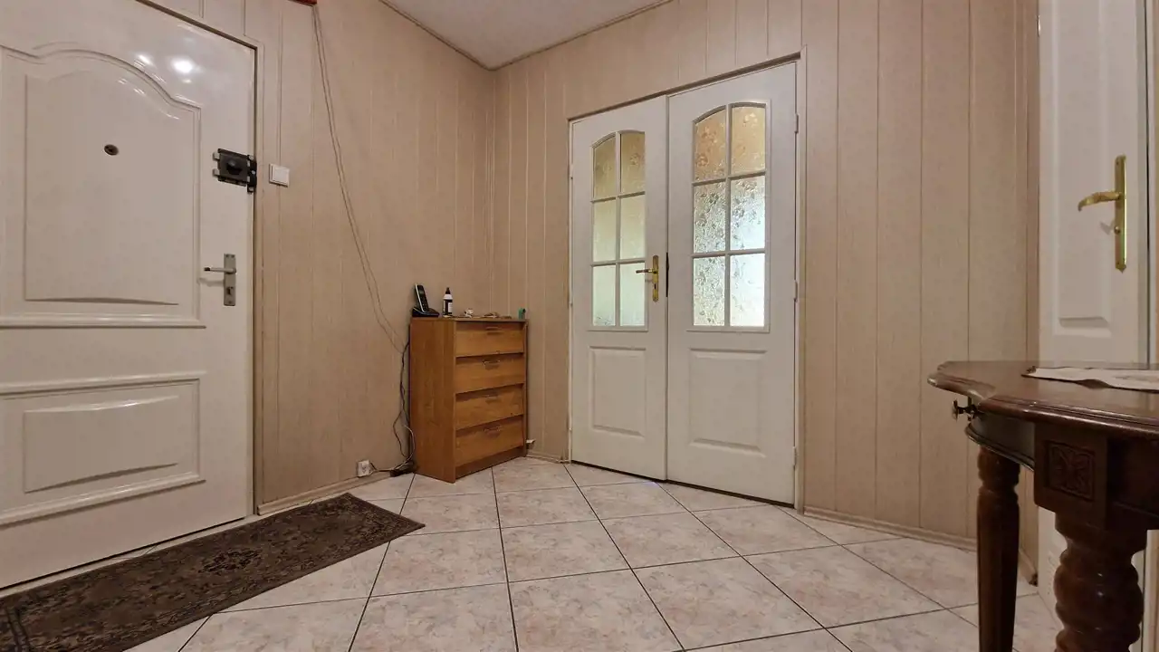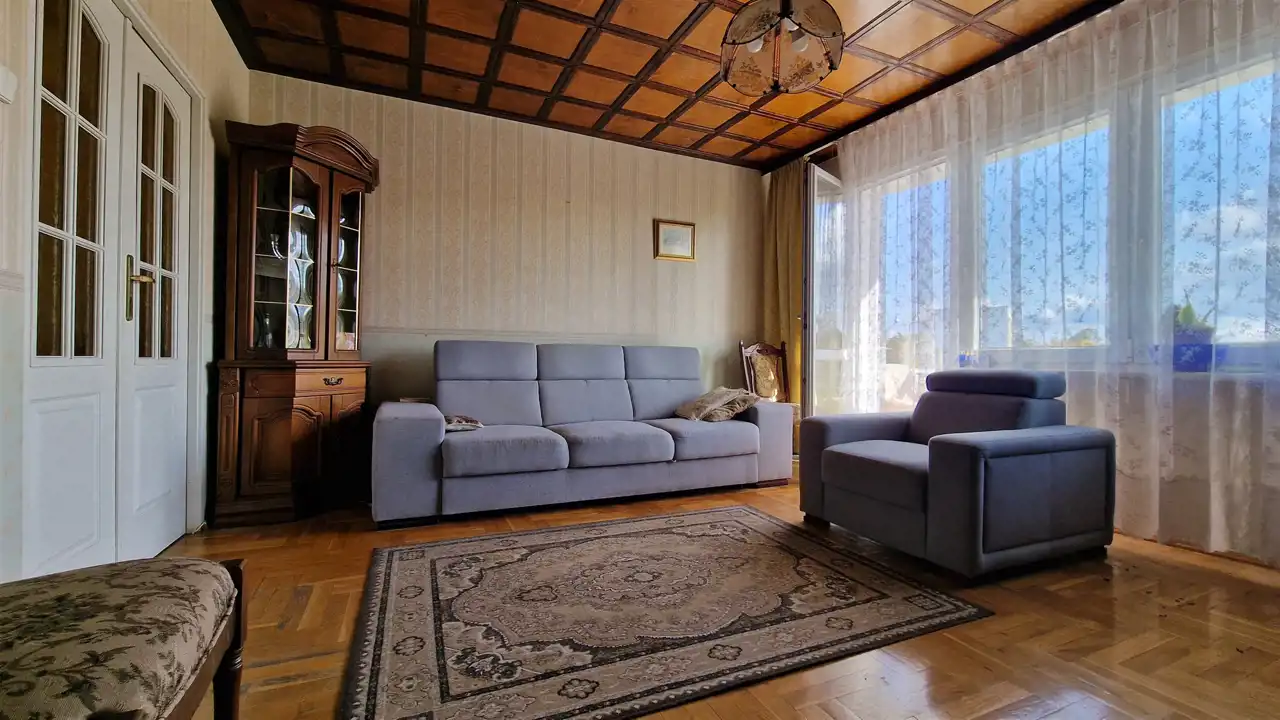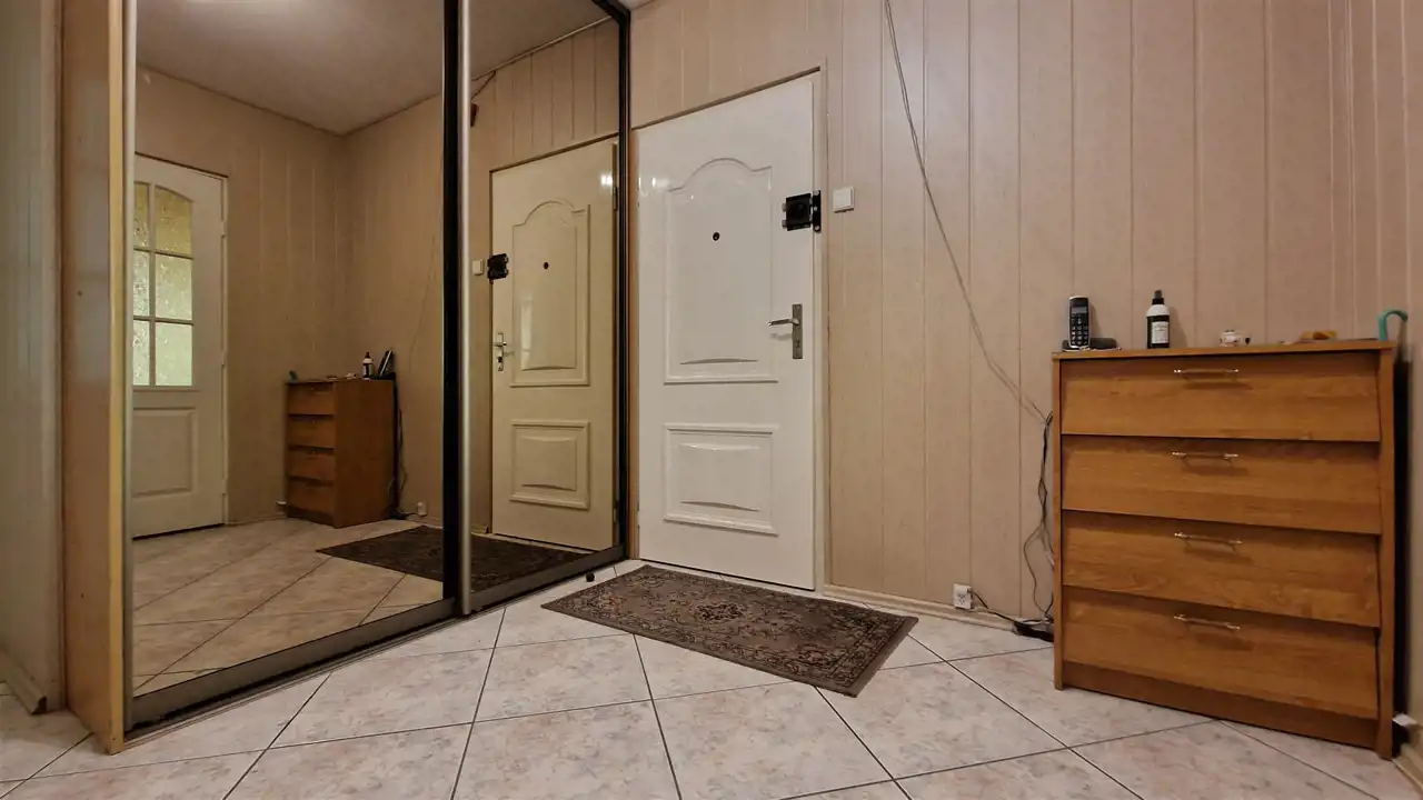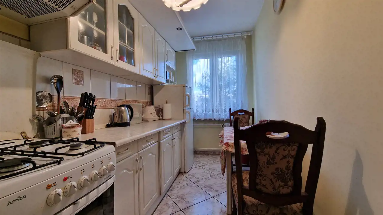 Pomieszczenia są ustawne, a układ funkcjonalny – z wyraźnym podziałem na strefę dzienną i nocną. W kuchni, łazience i przedpokoju na podłogach płytki ceramiczne.