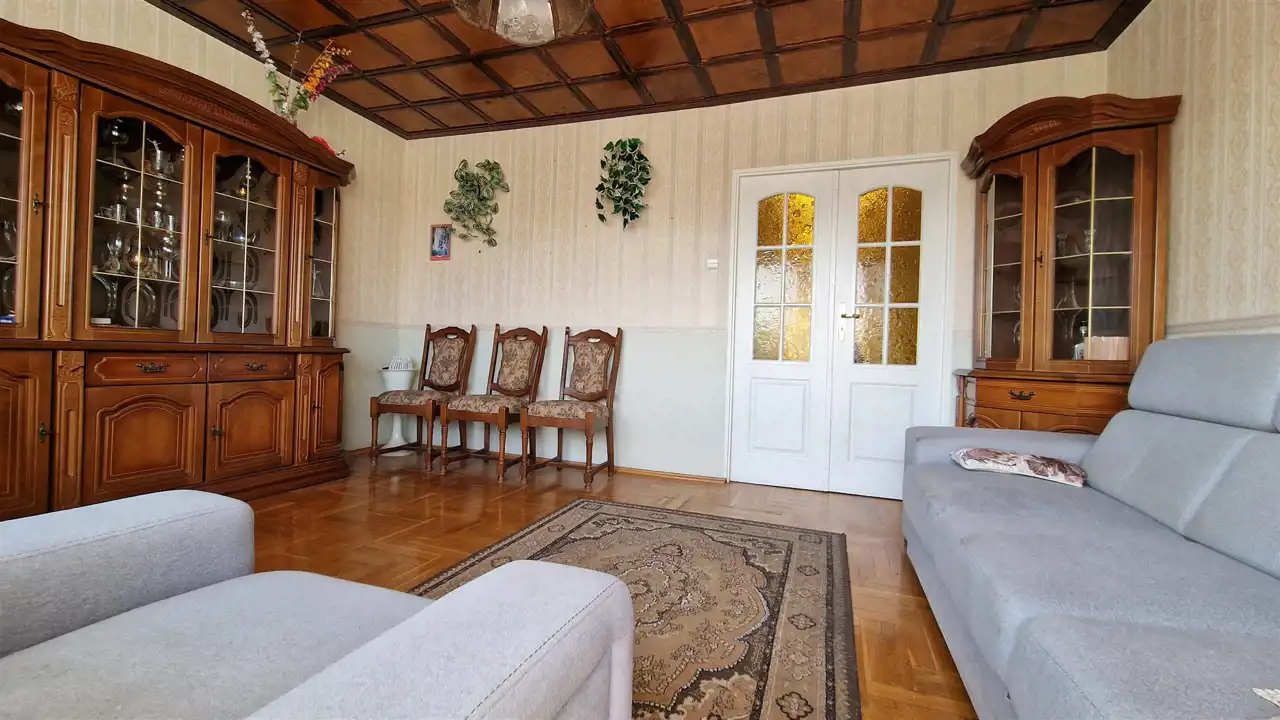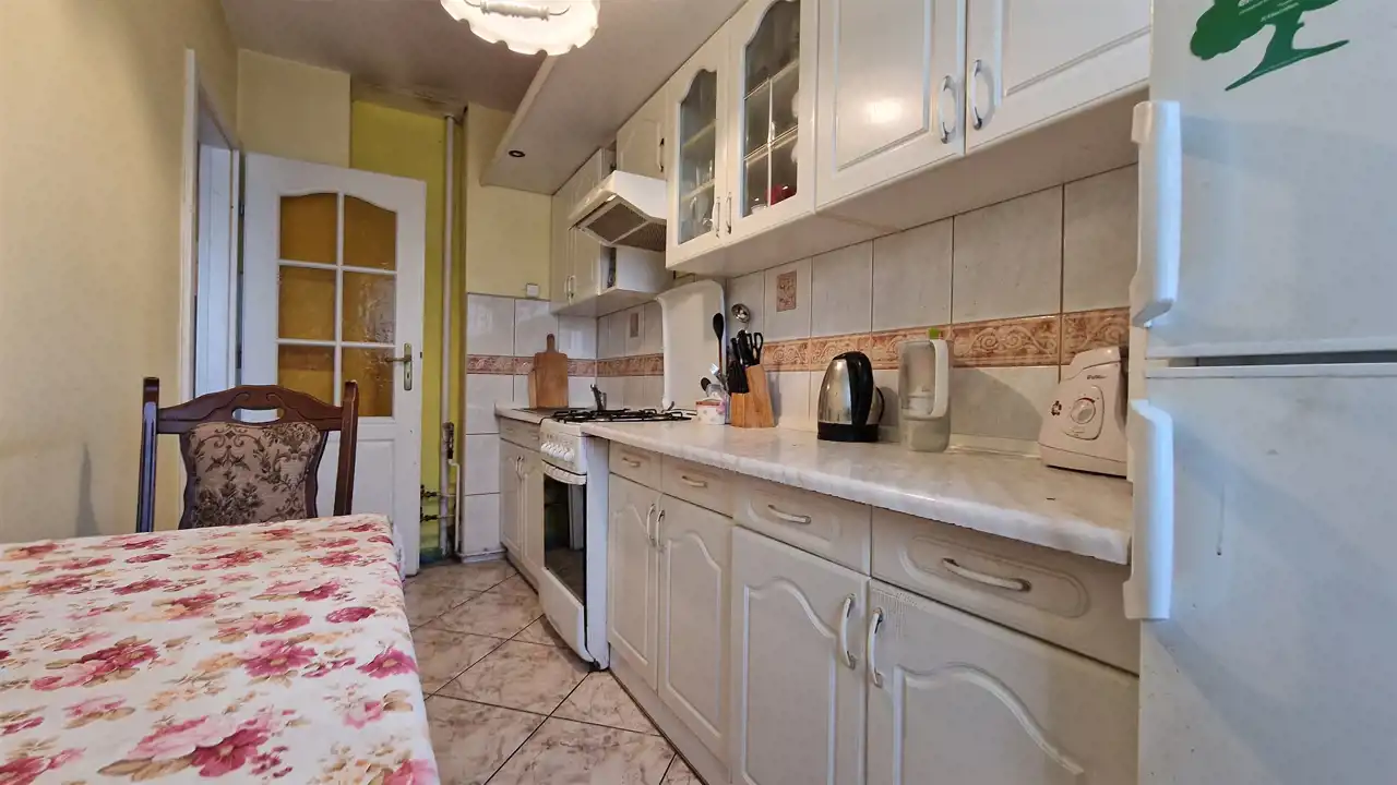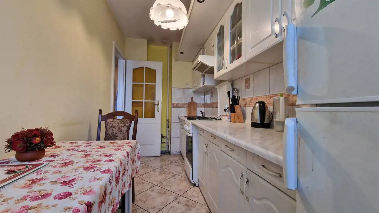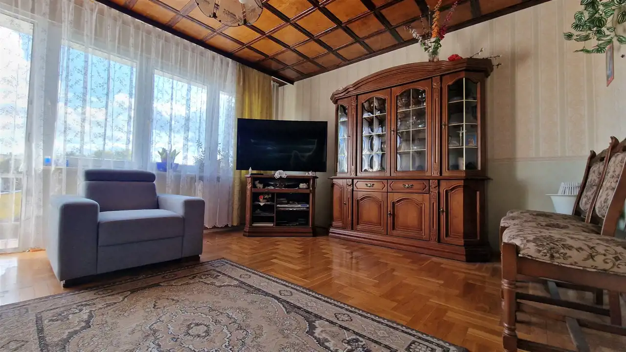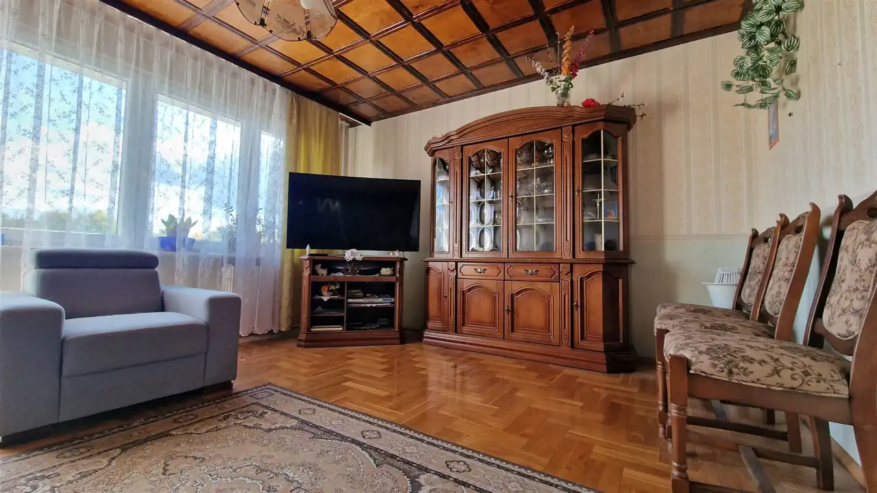 Pomieszczenia są ustawne, a układ funkcjonalny – z wyraźnym podziałem na strefę dzienną i nocną. W kuchni, łazience i przedpokoju na podłogach płytki ceramiczne.