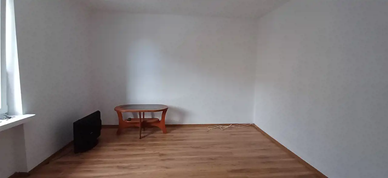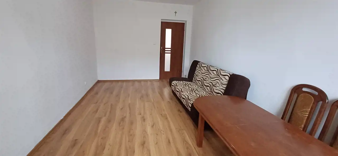 Rozkład :Przedpokój, z niego wchodzimy do przestronnego dużego pokoju dziennego, połączonego ze